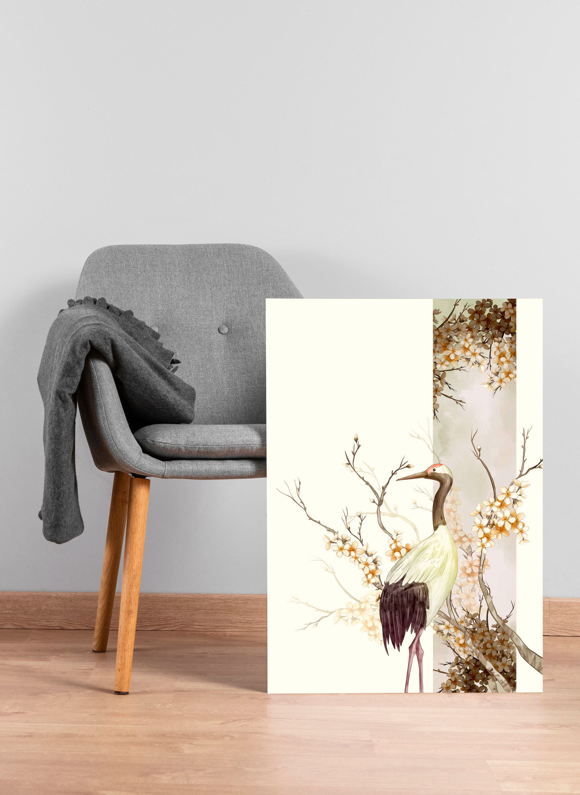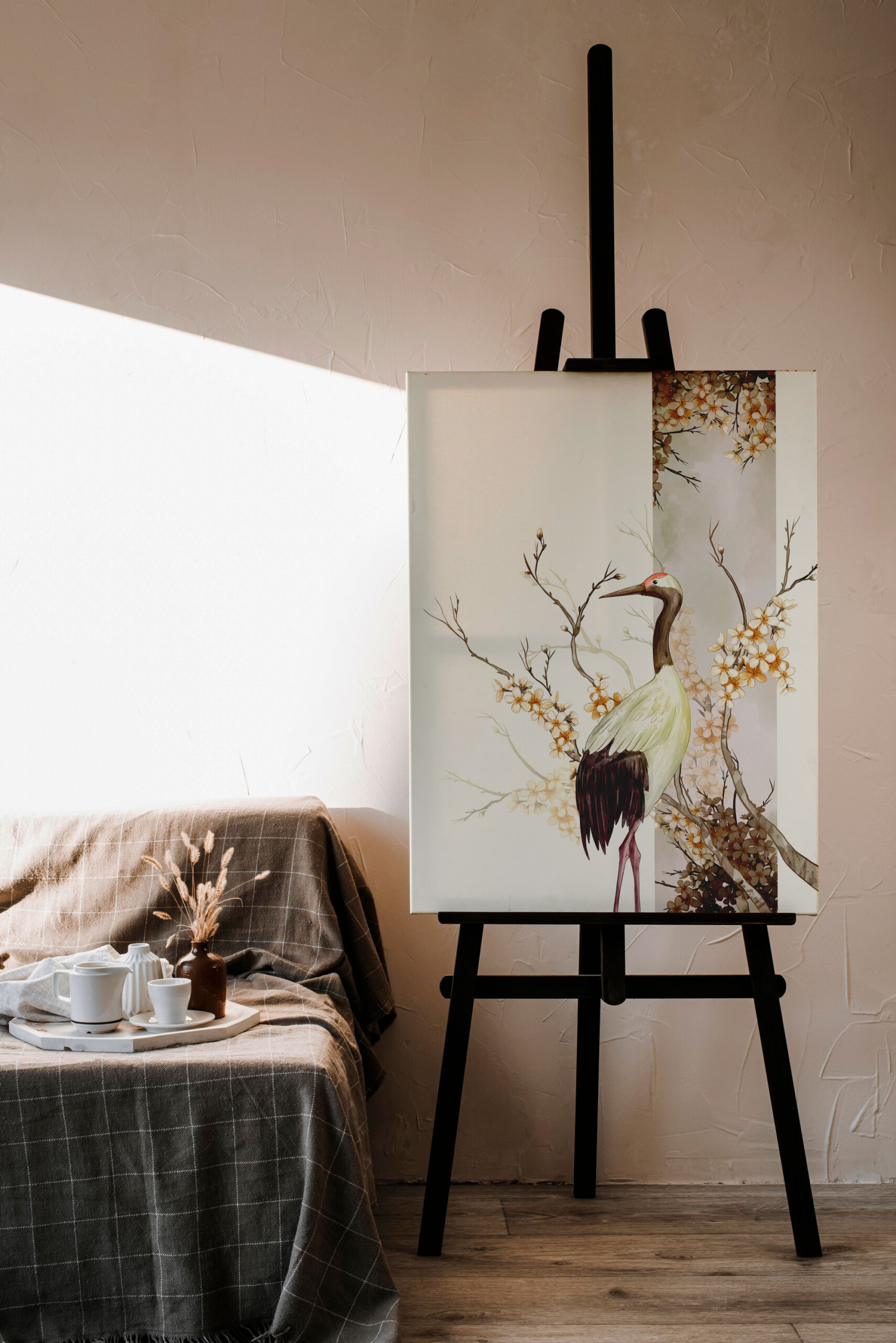 This design suits minimalist, Japandi, and nature-inspired interiors, and works beautifully in living rooms, bedrooms, dining areas, or peaceful workspaces. Elegant Stork in Bloom canvas print comes on high-quality canvas, carefully hand-stretched over a solid pine wood frame for a clean, gallery-ready look. Inspired by nature and guided by a passion for color, Fancy Walls creates expressive wall décor for everyday living.Canvas Highlights