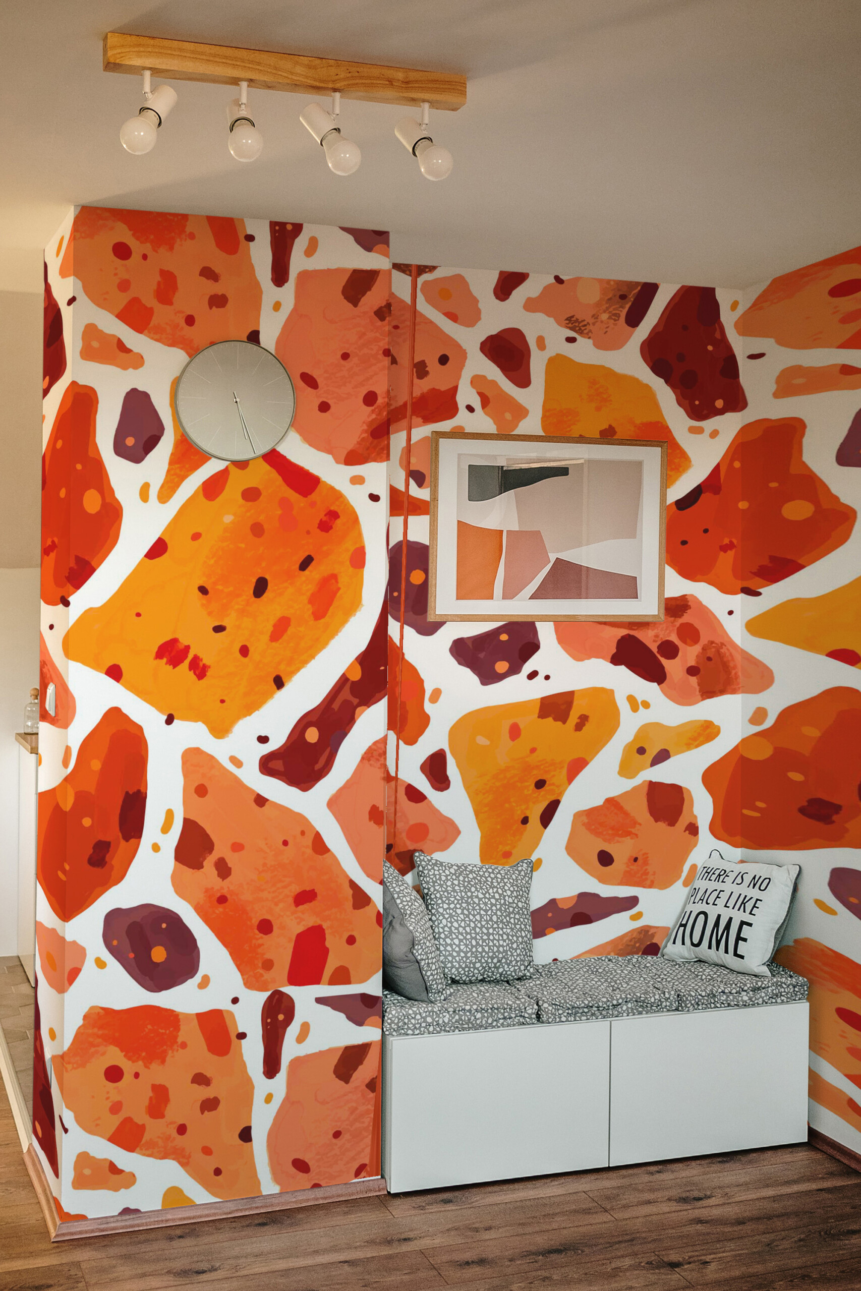 Radiant and cheerful, orange wall murals uplift your interior with playful spirit and creative energy.