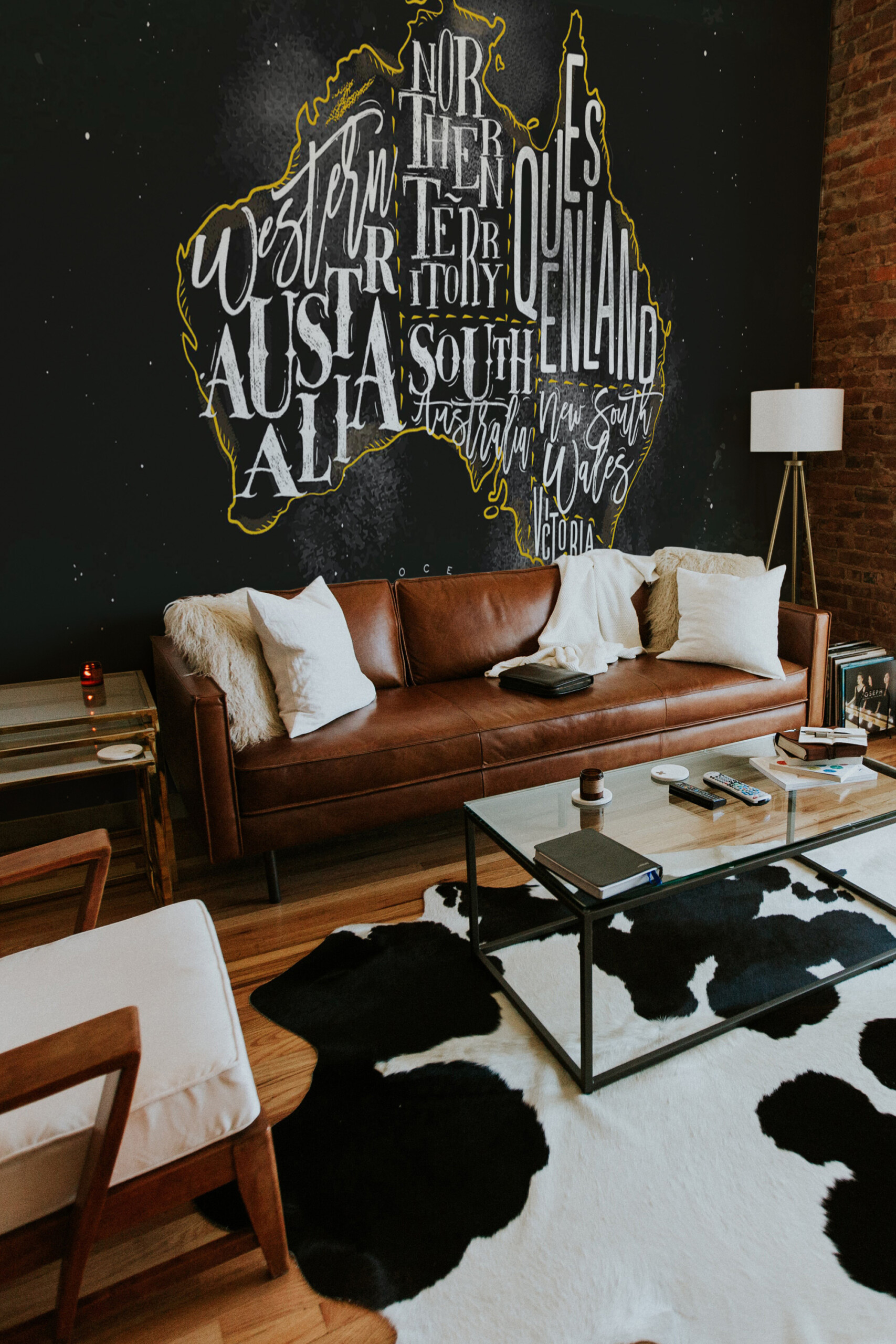 This Chalkboard Australia Map peel and stick wall mural installs easily, giving you a removable, self-adhesive way to refresh your décor with a bold chalk-style statement. This chalk-style typographic Australia design adds texture and personality while keeping a sleek monochrome look. Printed on eco-friendly, PVC-free materials using GreenGuard Certified inks, this wallpaper is safe for indoor use and ideal for long-term decorating.Wall Mural Highlights