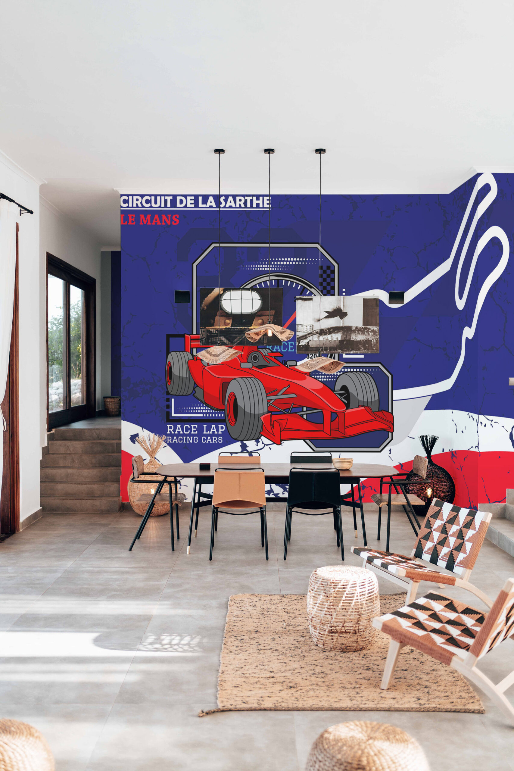 Le Mans Racing Car Wall Mural turns your game and gaming room into a high-energy race lounge. The deep blue background keeps the space cool while the red accents add instant adrenaline. It feels bold and modern, perfect behind a desk, couch, or sim rig setup. In a clean, modern room, it becomes the main feature without making things feel busy.
