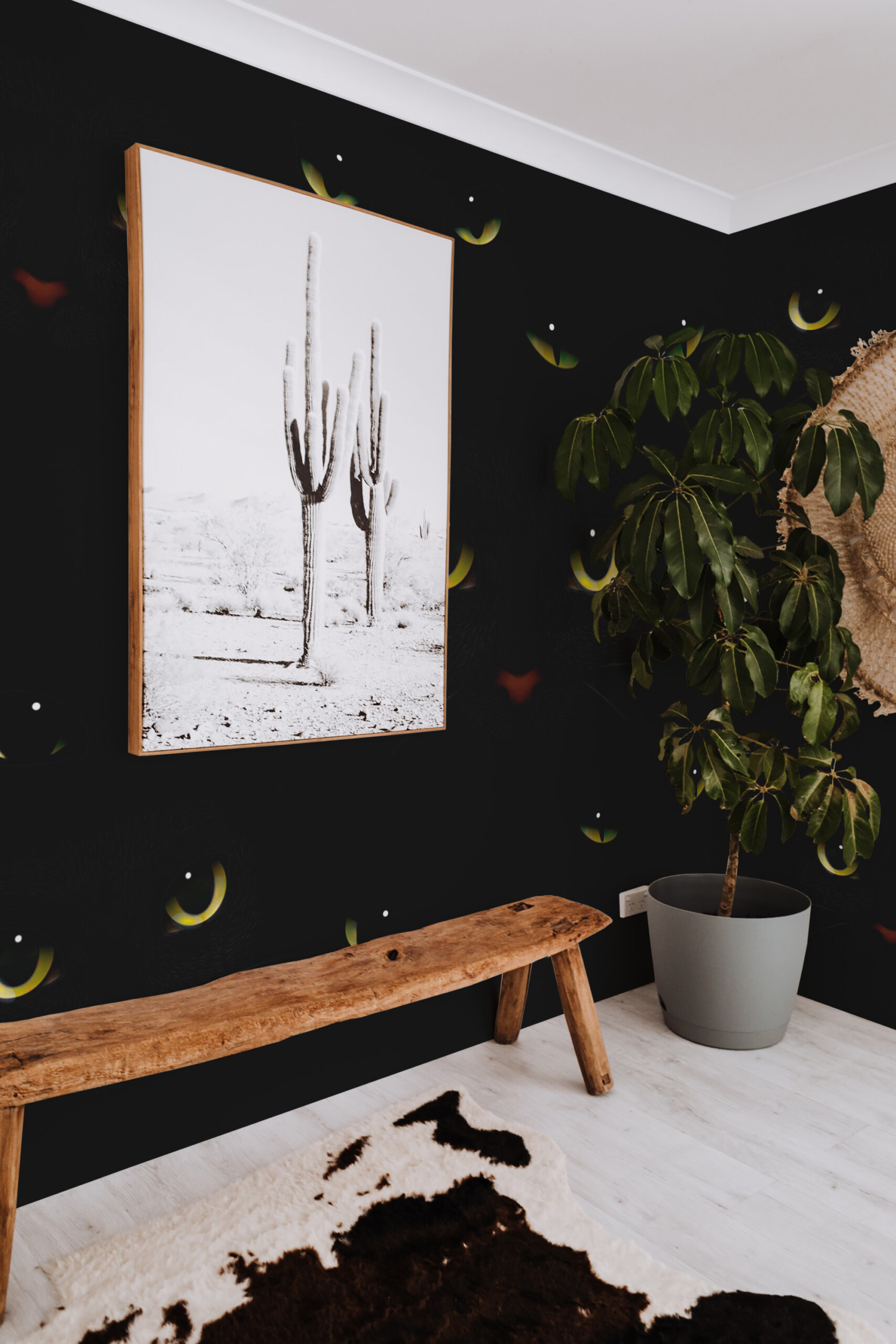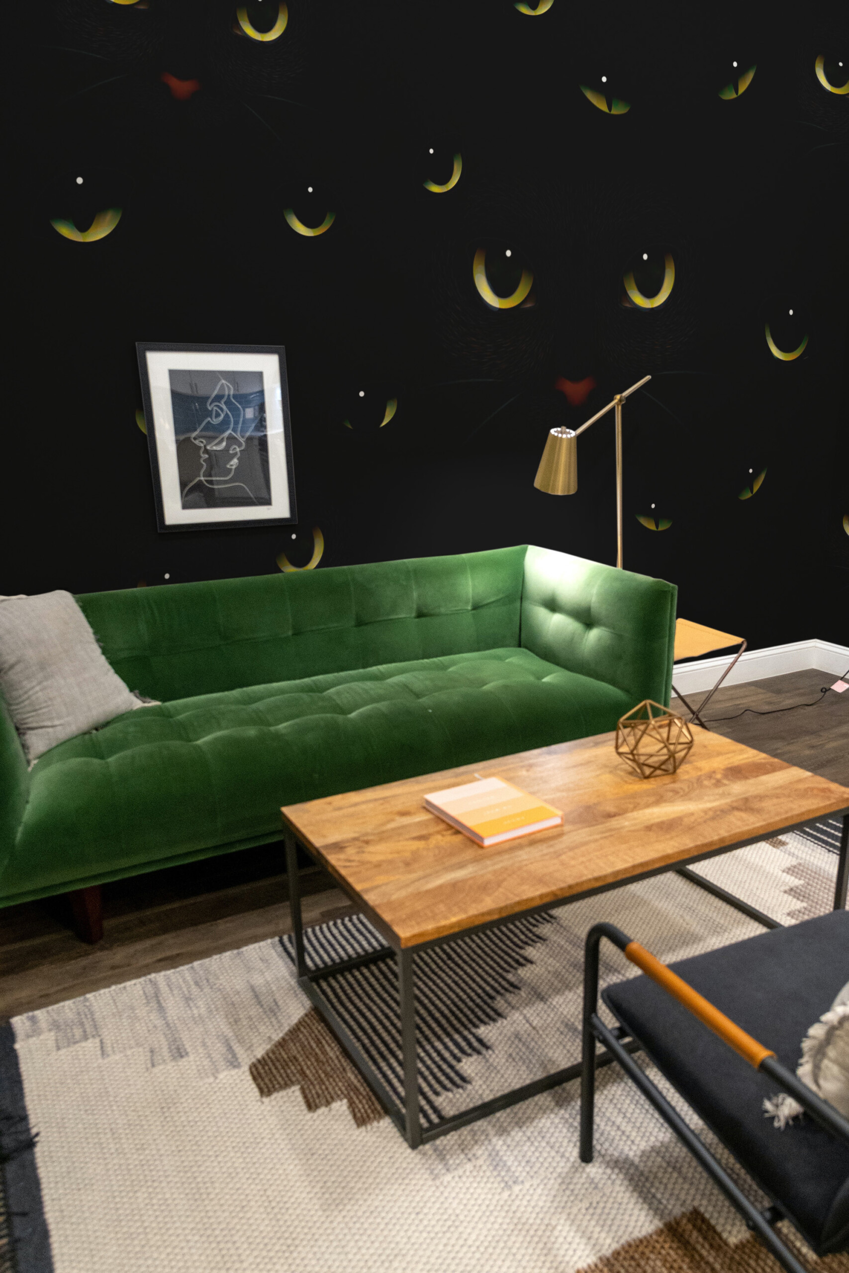 Mysterious Cat Eyes peel and stick wall mural installs easily as a removable, self-adhesive wallpaper designed for effortless styling. Midnight Feline Gaze adds intrigue and character without cluttering the space, allowing the artwork to command attention. Printed on eco-friendly, PVC-free materials using GreenGuard Certified inks, this removable, self-adhesive wallpaper is safe for indoor use and ideal for long-term decorating.Wall Mural Highlights