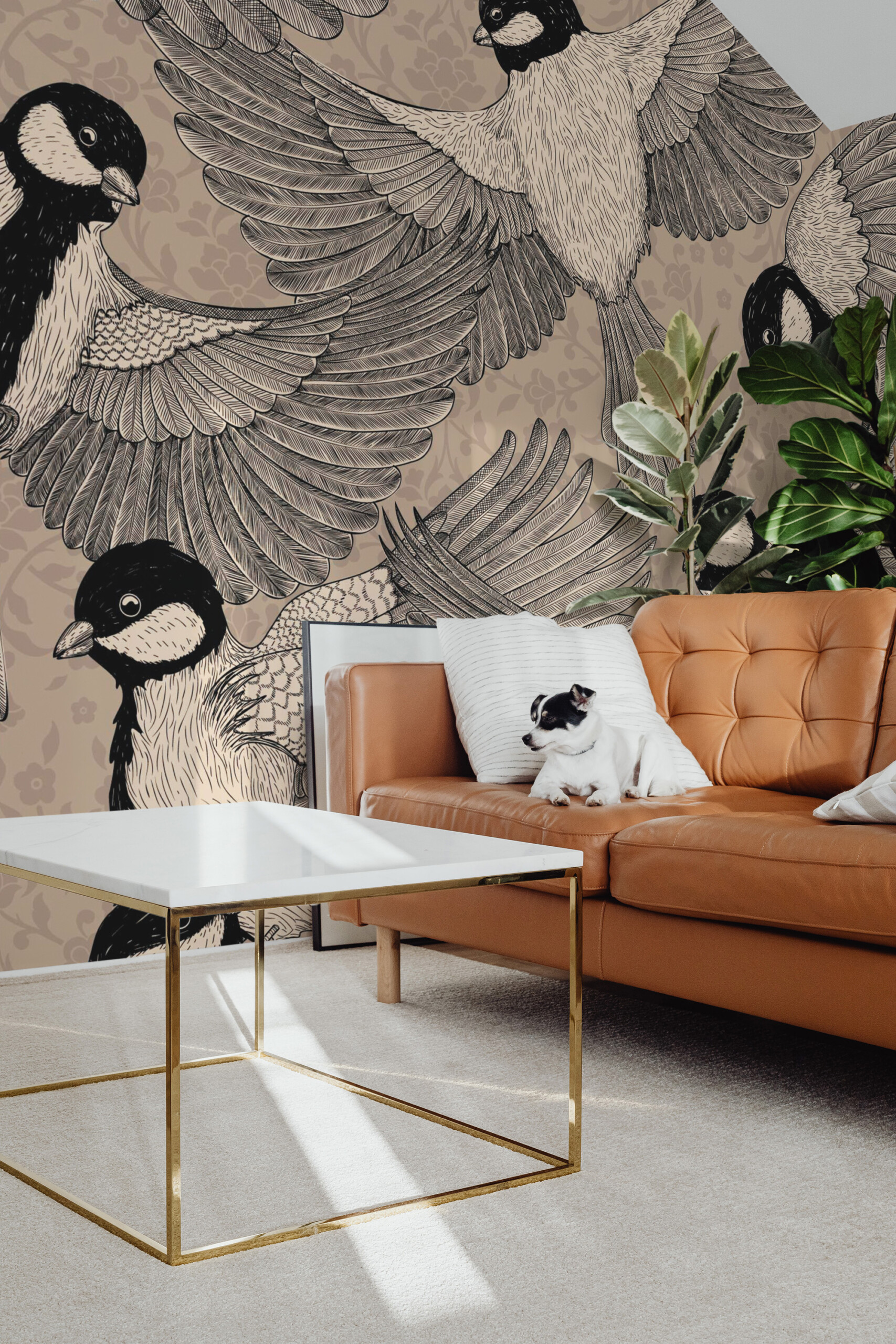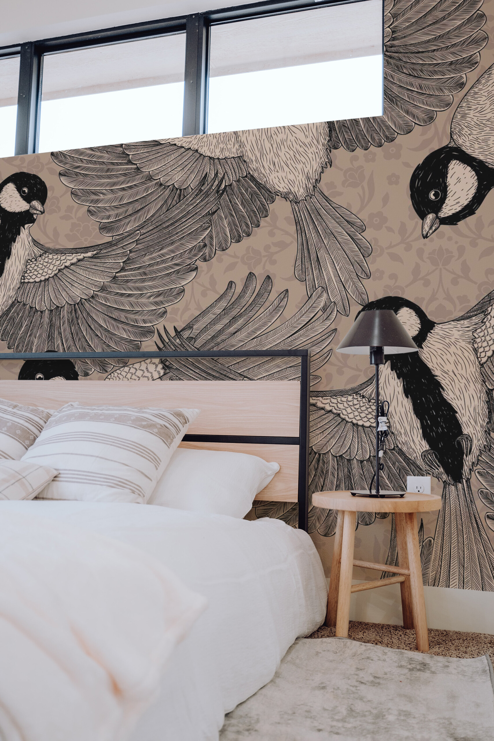 Ornate Vintage Birds wall mural brings timeless elegance to interiors with finely detailed bird illustrations set against a soft, neutral backdrop. The classic engraving-inspired artwork creates graceful movement across the wall, making it a refined choice for living rooms, bedrooms, offices, or traditional spaces that value character and calm.