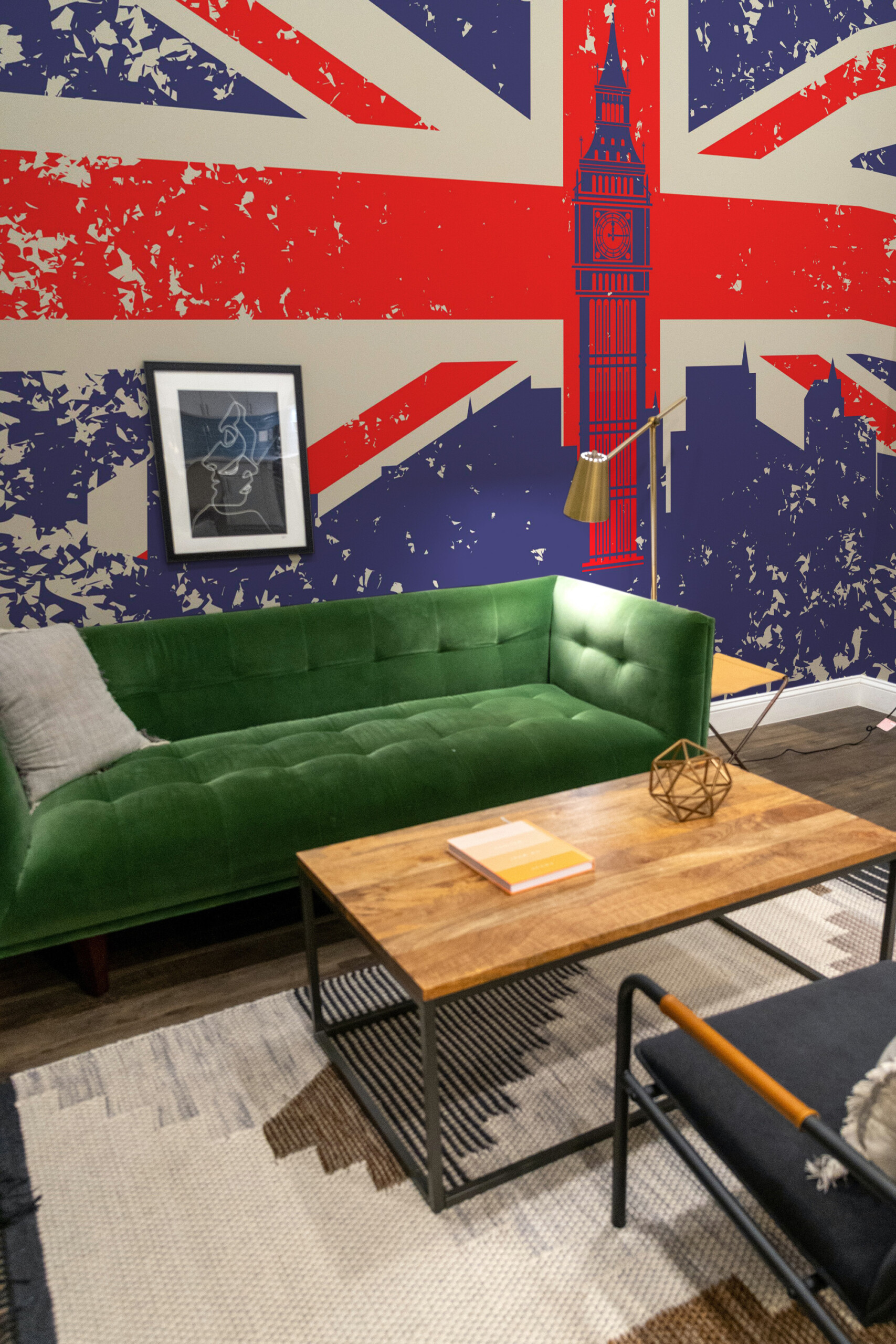 This Union Jack with Big Ben peel and stick wall mural offers a removable, self-adhesive wallpaper solution for easy decorating. London Heritage wall mural highlights patriotic design and urban artistry in a timeless way. Printed on eco-friendly, PVC-free materials using GreenGuard Certified inks, this wall mural is safe for indoor use and ideal for long-term decorating.Wall Mural Highlights