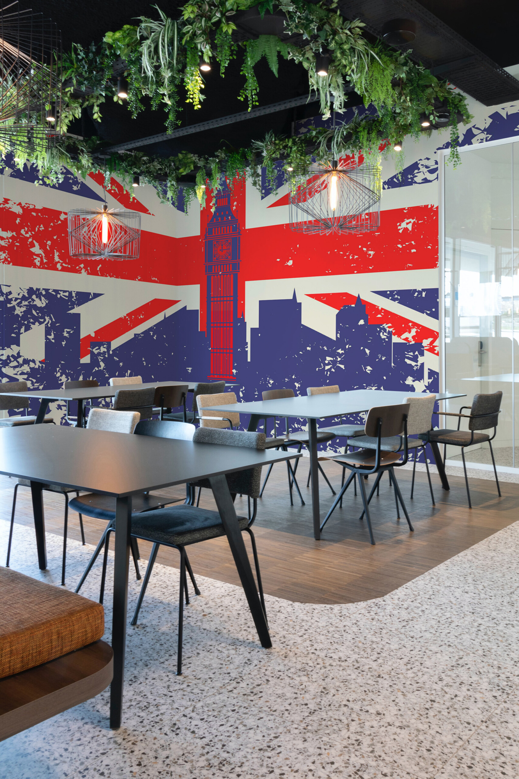 Union Jack with Big Ben wall mural brings bold British character to your interior with its modern grunge-style flag and the iconic silhouette of Big Ben. The striking blend of red, white, and blue tones creates a dramatic statement piece ideal for living rooms, offices, or contemporary spaces that embrace cultural flair.