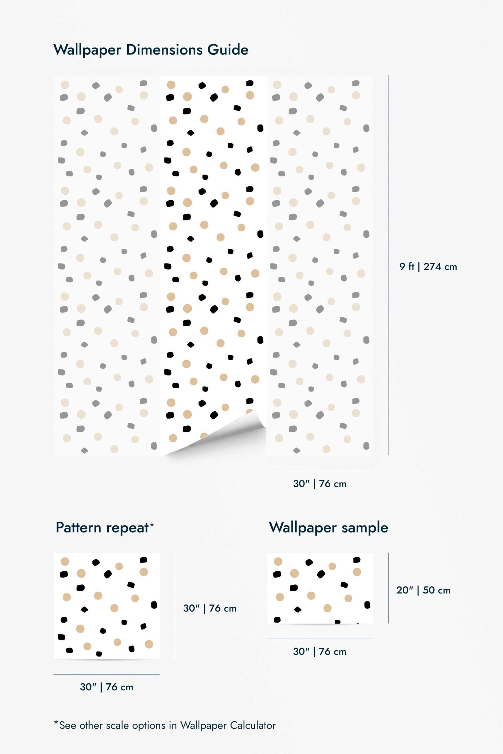 Beige, black and white dots wallpaper beautifully combines minimalist style with playful geometric patterns, making it an ideal choice for a kids’ room. Its chic and modern design, featuring an abstract twist on classic polka dots, brings a fun and stylish contrast to any space. While perfect for a child’s sanctuary, this wallpaper can also enhance other areas of your home, adding a touch of sophistication and joy. The Beige, black and white dots wallpaper is available in two options: a peel and stick version that is self-adhesive, easy to apply, and removable, and a non-pasted version for traditional application with glue. Designed with a passion for innovation and inspired by nature’s playful patterns, this wallpaper is a testament to our commitment to creating safe, PVC-free wall décor that brings life and color to homes worldwide.