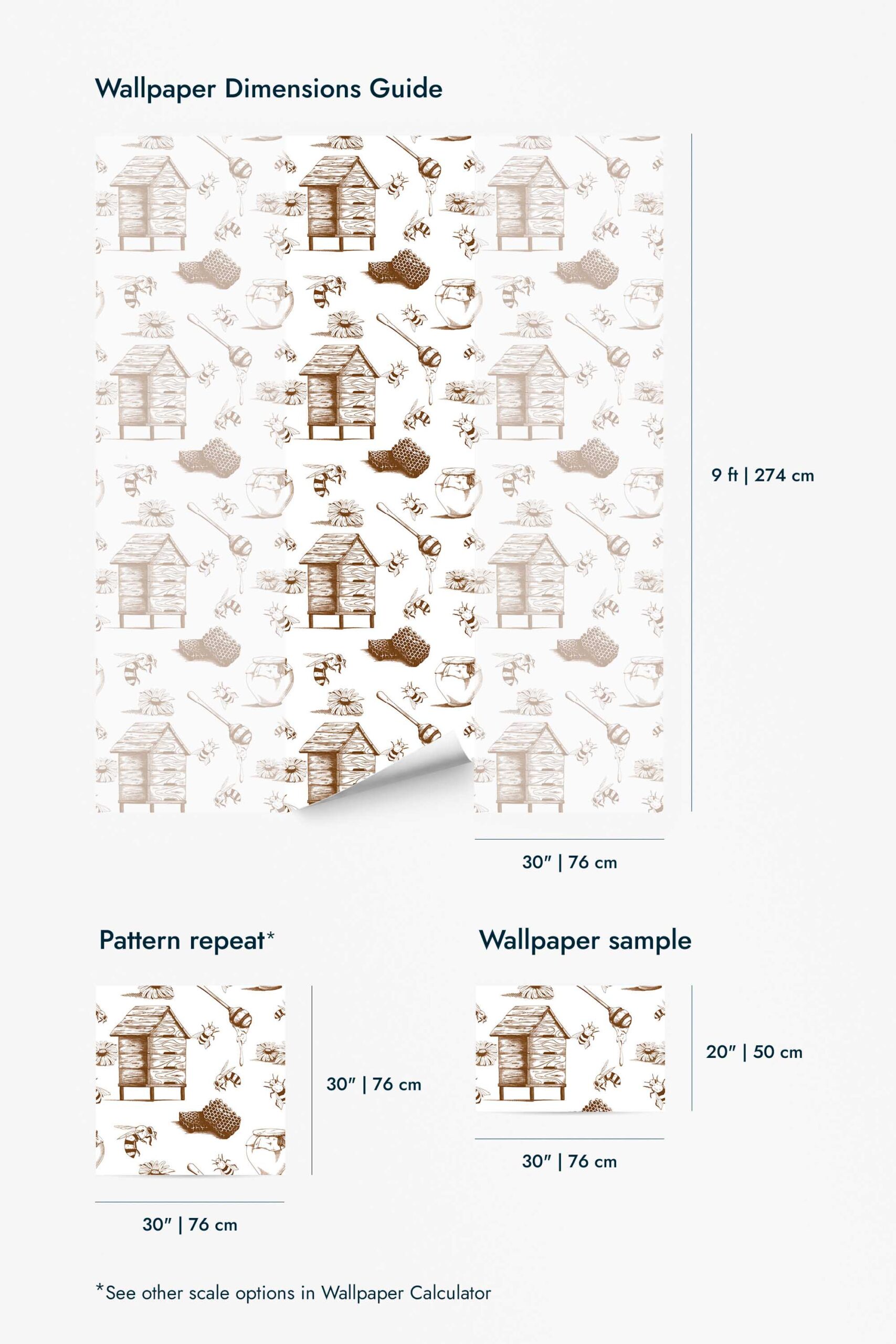 Beige honey bee wallpaper brings the charm of farmhouse style into your dining room with its beautiful taupe tones and intricate bee pattern. Delight in the rustic and whimsical vibe as charming brown bee and hive motifs dance across a crisp white background, transforming any space into a natural haven. Perfect for more than just the dining room, the Beige honey bee wallpaper adds a vintage, illustrative touch to any interior, creating a cozy and inviting atmosphere. Choose between our easy-to-apply peel and stick option, which is self-adhesive and removable, or the traditional non-pasted option that requires glue. The original Taupe can be replaced with any of our standard shades or a custom color of your choice, allowing you to personalize your space with ease. Discover the joy of innovative design inspired by nature, crafted by our global team dedicated to bringing safe, PVC-free, and beautiful wall décor to homes everywhere.