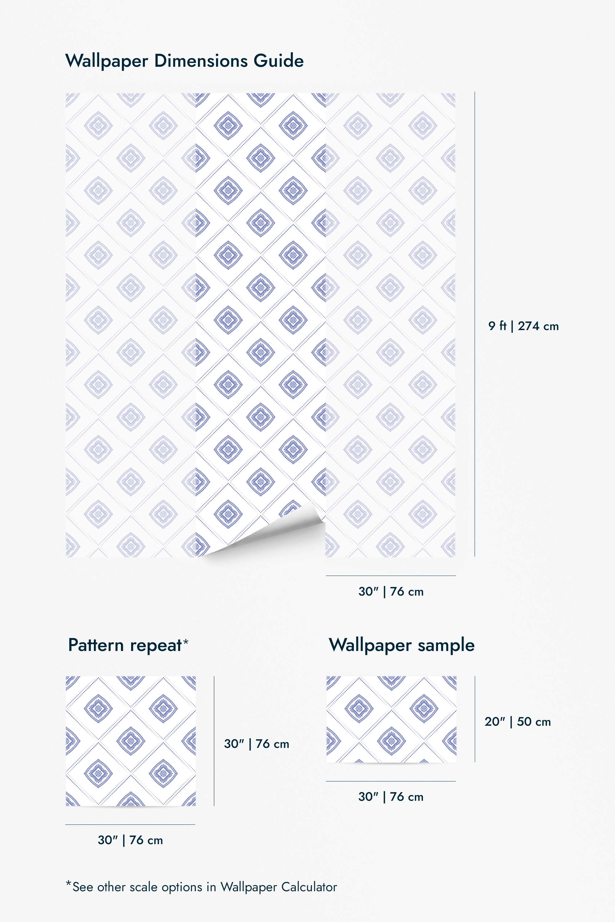 Yes — click the Preview & Calculate button to see the design close-up, preview it in sample interiors, and calculate how much you’ll need.