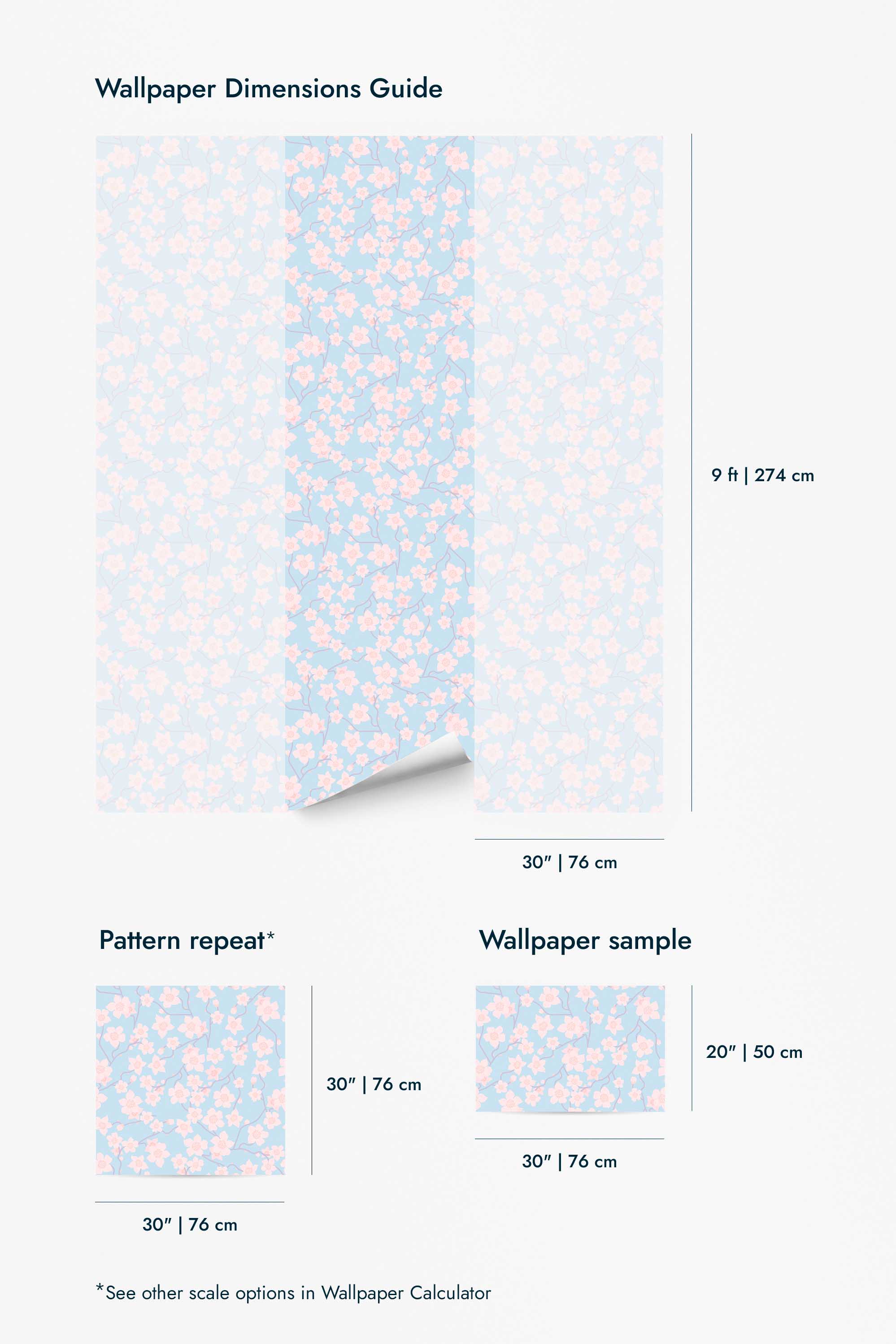 Cherry blossom wallpaper invites you to embrace the elegance of Chinoiserie style with its delicate floral pattern, featuring a pastel aesthetic of soft pink blossoms on a serene blue backdrop—perfectly suited for a nursery. This exquisite design infuses any room with a calming and romantic ambiance, transforming spaces beyond the nursery into serene havens of tranquility. The Cherry blossom wallpaper is available in two options: an easy-to-apply peel and stick version, which is self-adhesive and removable, requiring no glue, and a traditional non-pasted version that requires glue for application. Let Cherry blossom bring a touch of nature’s whimsy and elegance to your home, creating a delightful sanctuary that is both innovative and inspired.