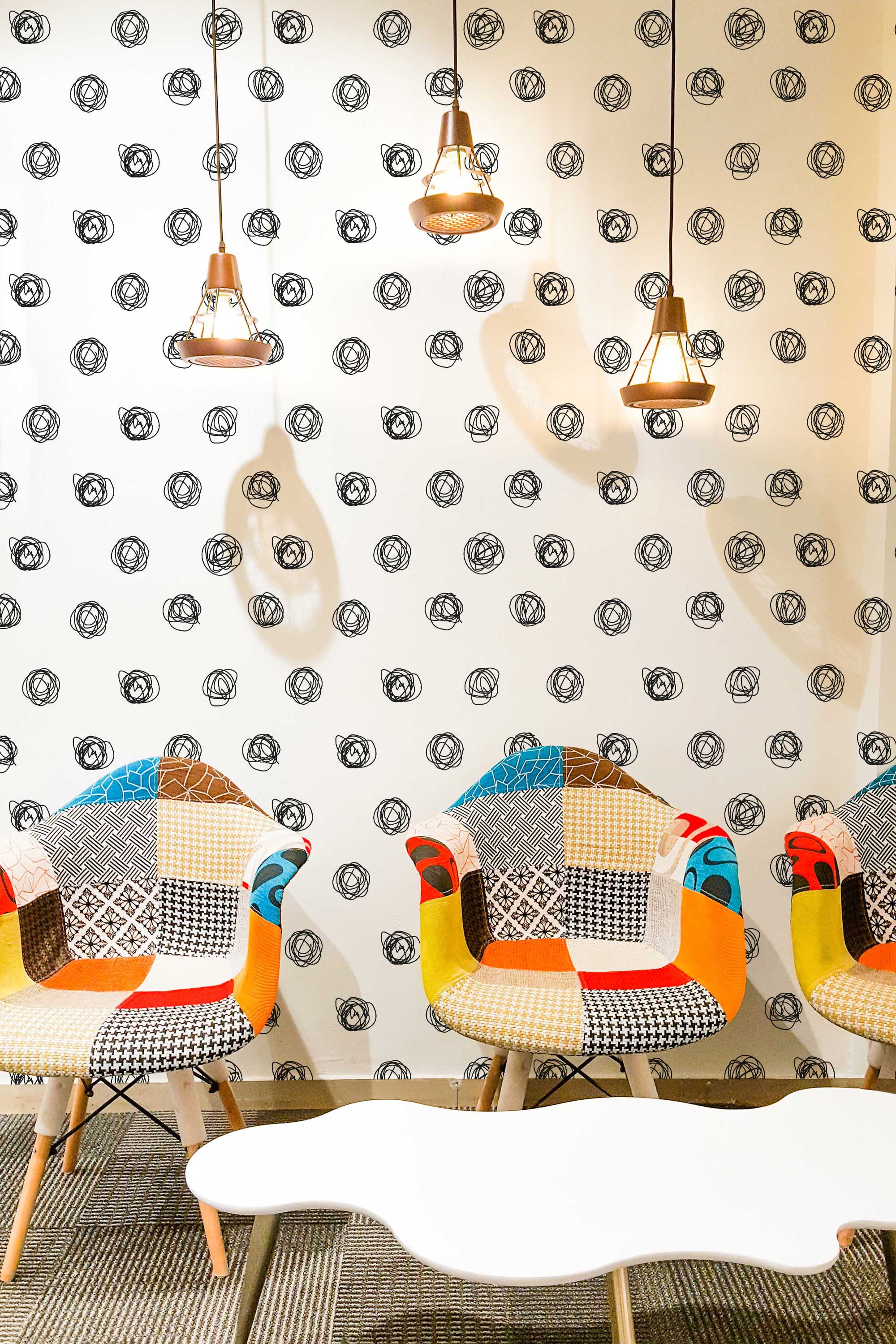 Contemporary dots wallpaper brings a minimalist flair to your office with its striking black and white palette, featuring chaotic black scribble dots on a crisp white background. This playful and modern monochrome pattern enhances not just office spaces, but any room seeking a touch of artistic elegance and dynamic charm. Whether you’re looking to invigorate a home workspace or add a creative edge to a living area, Contemporary dots wallpaper offers versatility and style. Available in peel and stick, which is delightfully easy to apply and removable, and non-pasted for those who prefer a traditional approach, this design fits seamlessly into your décor plans. Plus, you can customize the colors, swapping the original black and white for any of our standard shades or a custom hue of your choice. Our passionate team is committed to bringing safe, PVC-free, and beautiful wall décor that transforms homes into vibrant spaces full of life and inspiration.