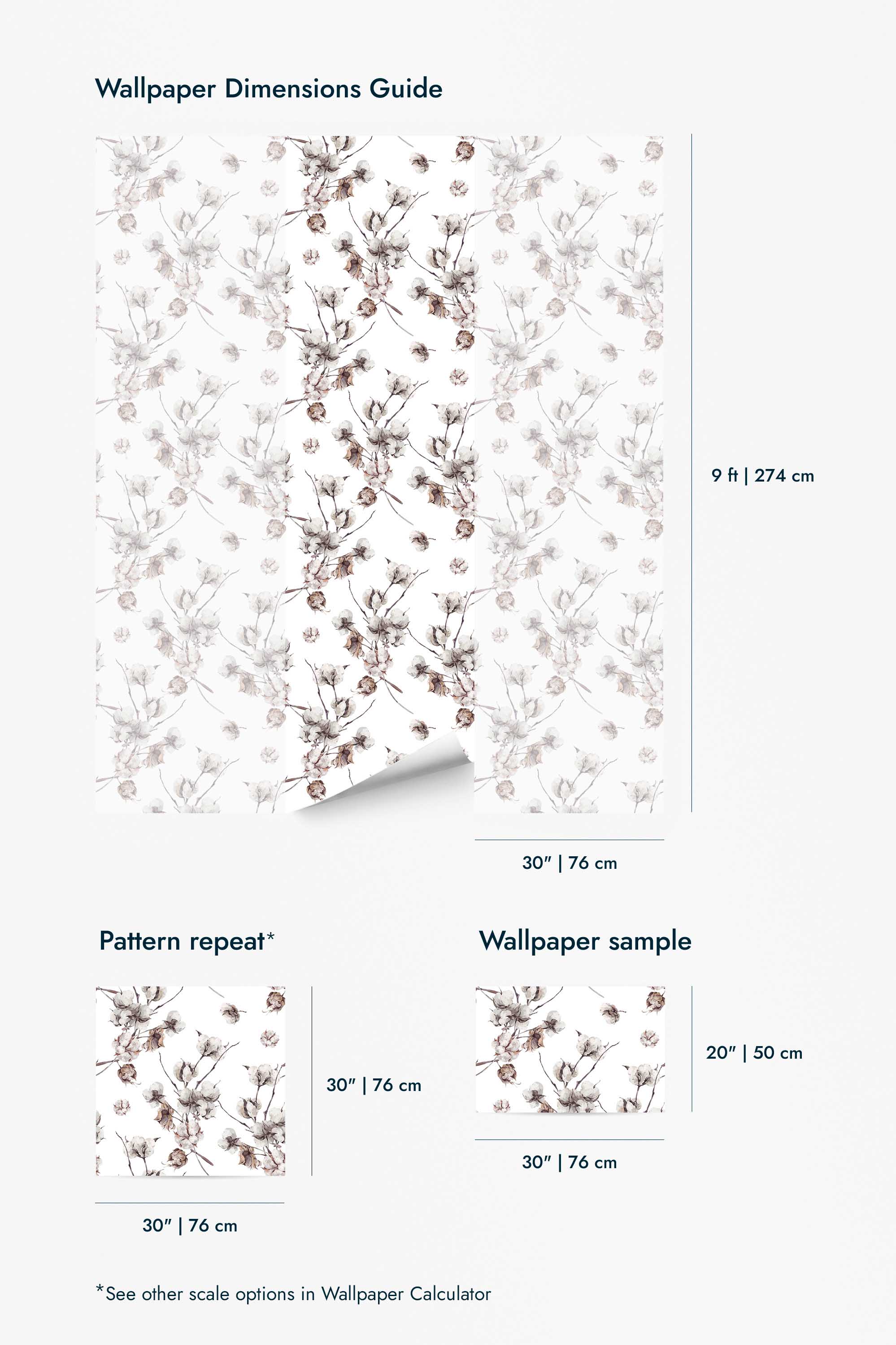 Cotton wallpaper envelops your bedroom in a serene botanical sanctuary, showcasing delicate plant and tree patterns in soothing Earth tones. This calming design, featuring airy cotton bolls in soft gray and white, effortlessly transforms any space into a minimalist haven inspired by nature’s elegance. Whether gracing a cozy bedroom or enhancing a tranquil living room, Cotton wallpaper adds a touch of organic beauty and sophistication to your home. Available in both peel and stick (self-adhesive, removable) and non-pasted options, the easy-to-apply peel and stick version makes refreshing your walls a breeze. Embrace the natural, soft charm of Cotton and experience the joy of bringing life and color to your space with our PVC-free, globally inspired designs.