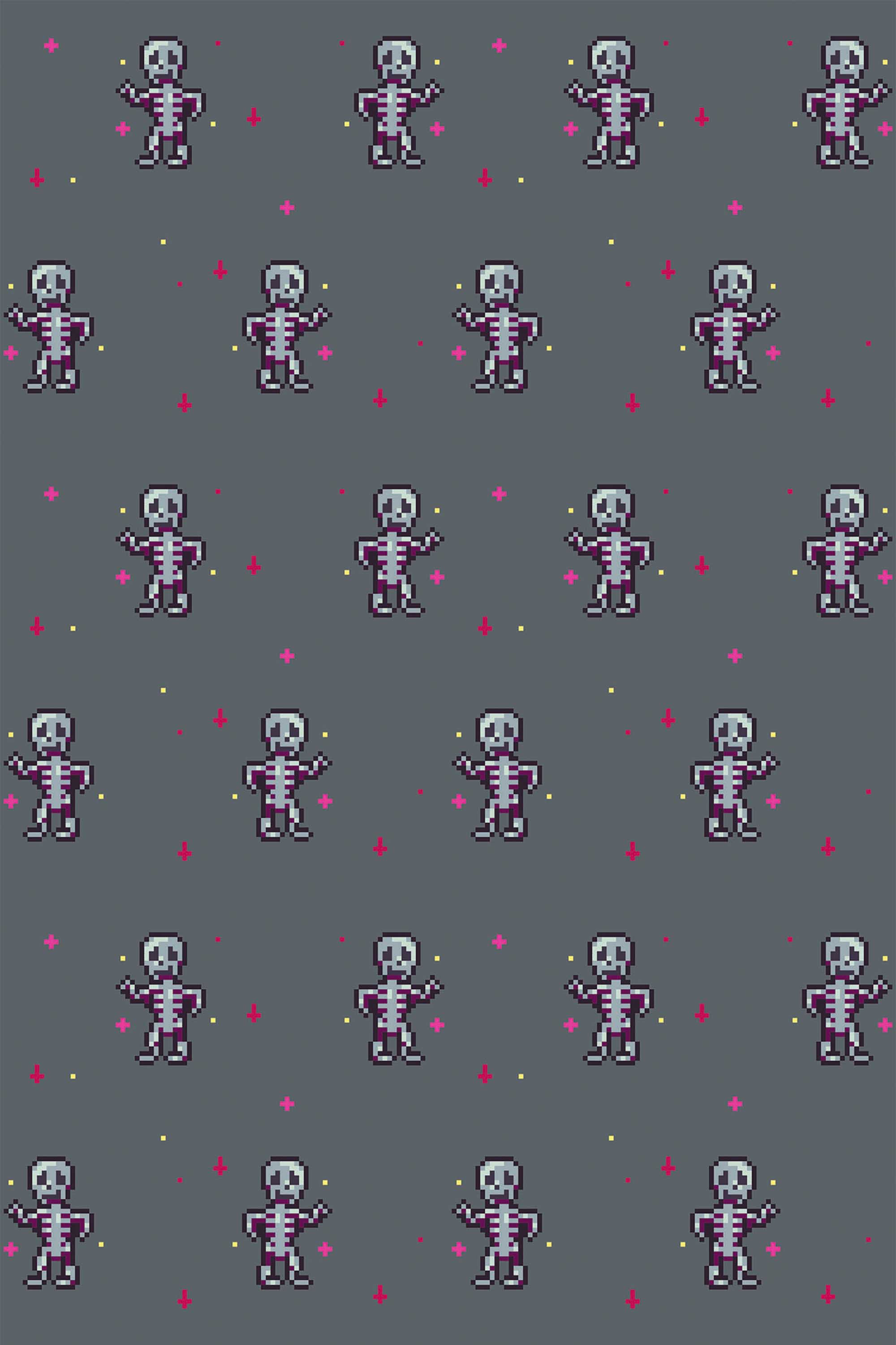 Cute Pixel Skeletons wallpaper adds playful kawaii charm with rows of dancing pixel skeletons set against a soft brownish gray background. The cheerful design feels lighthearted and fun, making it an ideal choice for game rooms, kids’ bedrooms, or creative corners.