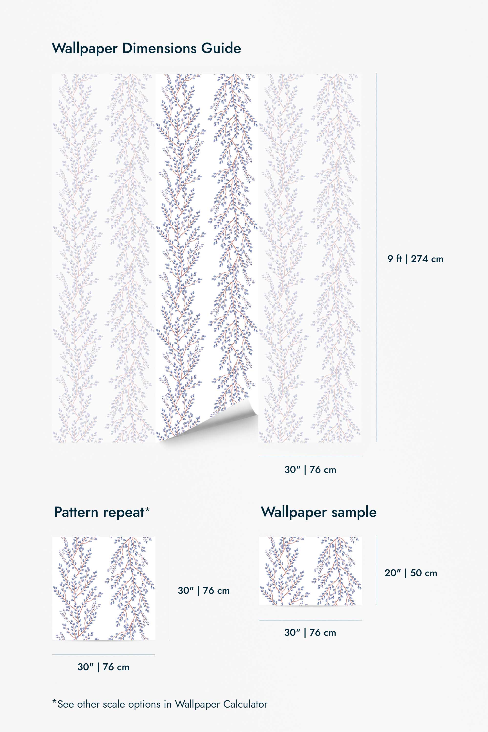 Material Type Woven – 100% polyester fabric Weight Total: 450 gsm (PET film: 280 gsm, liner: 120 gsm) Width 30″ Height Options 20″ (Sample), 48″, 72″, 96″, 108″, 120″, 144″ Print Quality High-resolution pattern Installation Self-adhesive, no paste required. Panels are installed edge-to-edge with a straight match and can be trimmed if needed. Application Type Peel and Stick Tools Needed Level, pencil, utility knife, measuring tape, squeegee (included with orders over $150) Removal Strippable – can be removed in one piece Repositionable Up to 24 hours after installation Surface Compatibility Best on smooth or lightly textured walls. Not suitable for brick, stucco, or heavily textured surfaces. We recommend testing a sample first. Finish Matte woven texture with a soft, fabric-like feel Opacity Semi-opaque – not recommended for dark-colored walls. We suggest trying a sample first if your wall isn’t white. Thickness 0.41mm Humidity Use Suitable for dry and moderately humid spaces (bathrooms). Not recommended for direct water contact or high-moisture areas. Care Wipe clean with a damp cloth. Avoid vigorous rubbing or harsh cleaners. PVC-free Yes Breathable No Ink Type & Certificates UV, GreenGuard Certified – safe for homes, nurseries, and sensitive environments