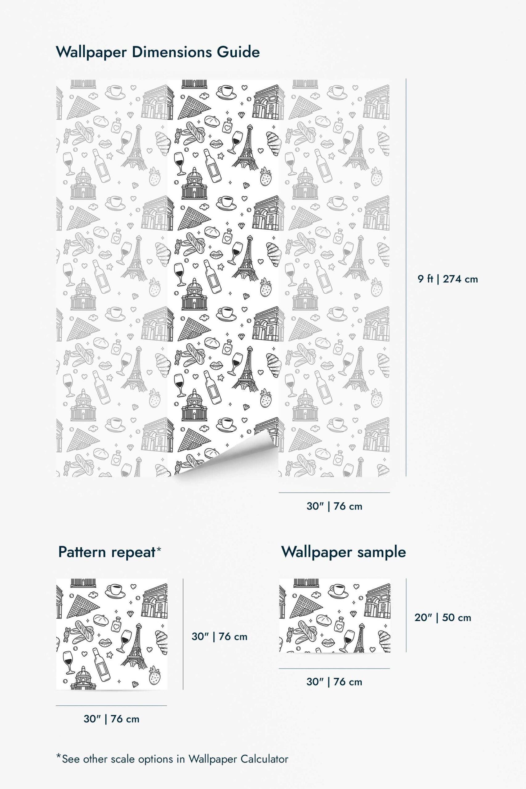 Elements of Paris wallpaper brings a touch of novelty and fun to your bakery with its whimsical black and white design, capturing the romantic essence of Paris with playful illustrations of croissants, the Eiffel Tower, and more. This charming wallpaper doesn’t just enhance bakeries; its iconic and chic elements can transform any space into a Parisian haven, infusing interiors with a delightful mix of illustrative charm and elegance. Available in two options, the peel and stick version is easy to apply and remove, making it perfect for those seeking a hassle-free update, while the non-pasted version offers a more traditional application experience. The original black and white can be replaced with any of our standard shades or a custom color of your choice, allowing you to tailor the Elements of Paris wallpaper to your unique style. Designed with passion and crafted with care, this wallpaper inspires innovation and joy, bringing beauty and life into homes around the world with its safe, PVC-free material.