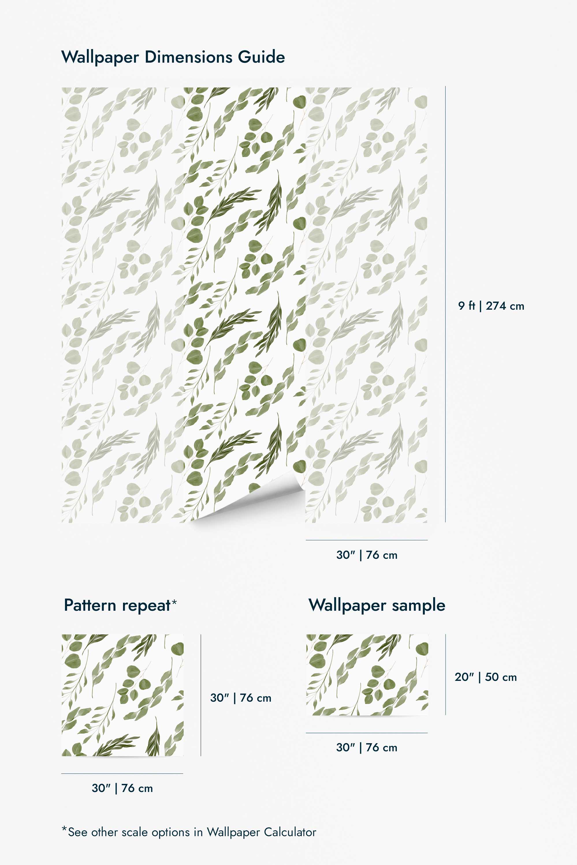 Eucalyptus wallpaper brings a serene botanical style to your bedroom with its delicate sage green leaf motifs scattered on a crisp white background. Designed to evoke a sense of tranquility and freshness, this pattern can transform any space into a calming retreat, from living rooms to home offices. The Eucalyptus wallpaper is available in two convenient options: the innovative peel and stick version, which is easy to apply without glue and can be removed without hassle, and the traditional non-pasted version for those who prefer a classic application. Embrace the peaceful allure of nature in your home with Eucalyptus, crafted by our passionate team dedicated to providing safe, PVC-free, and beautiful wall décor that infuses life and joy into every corner of your world.