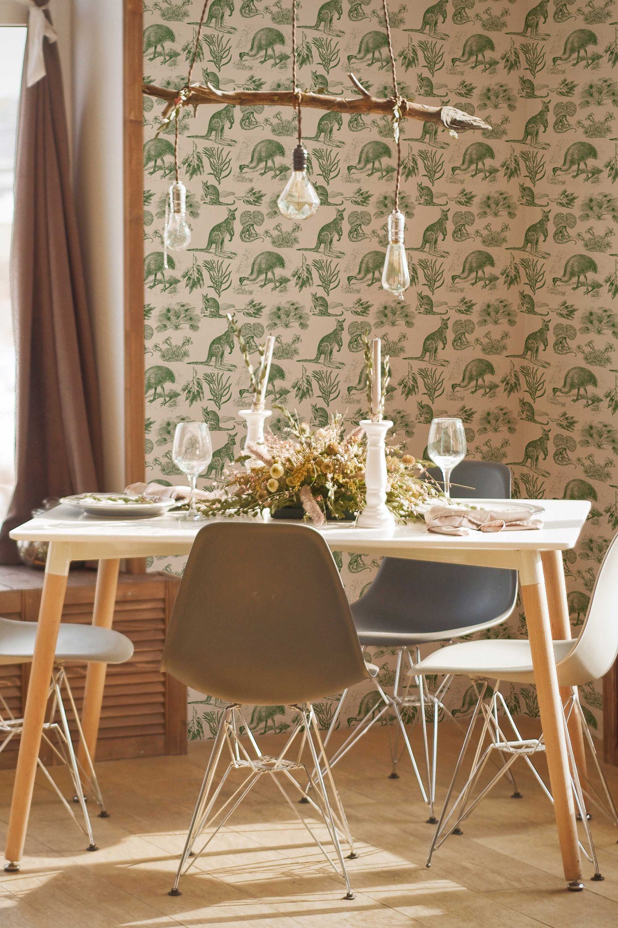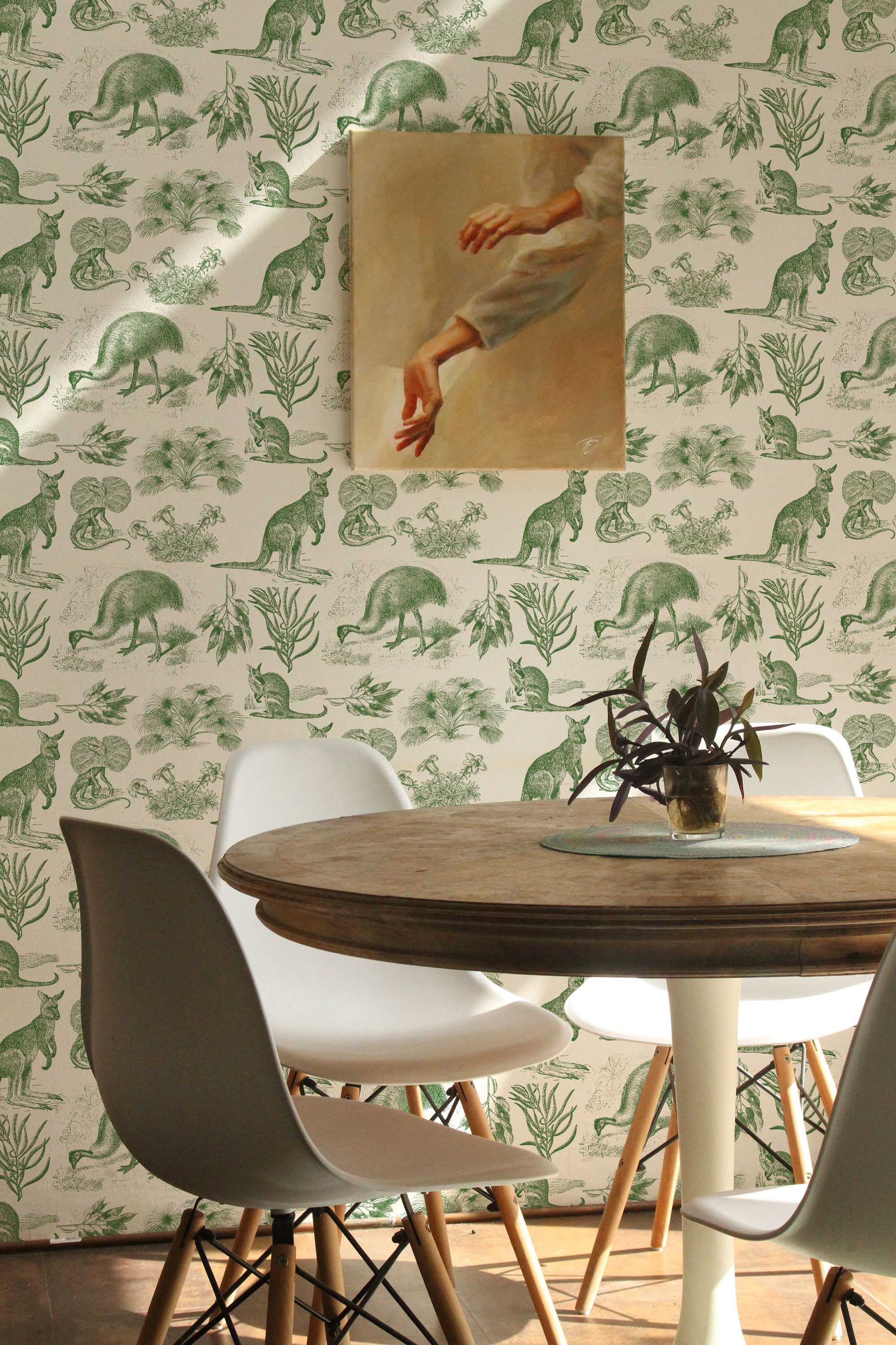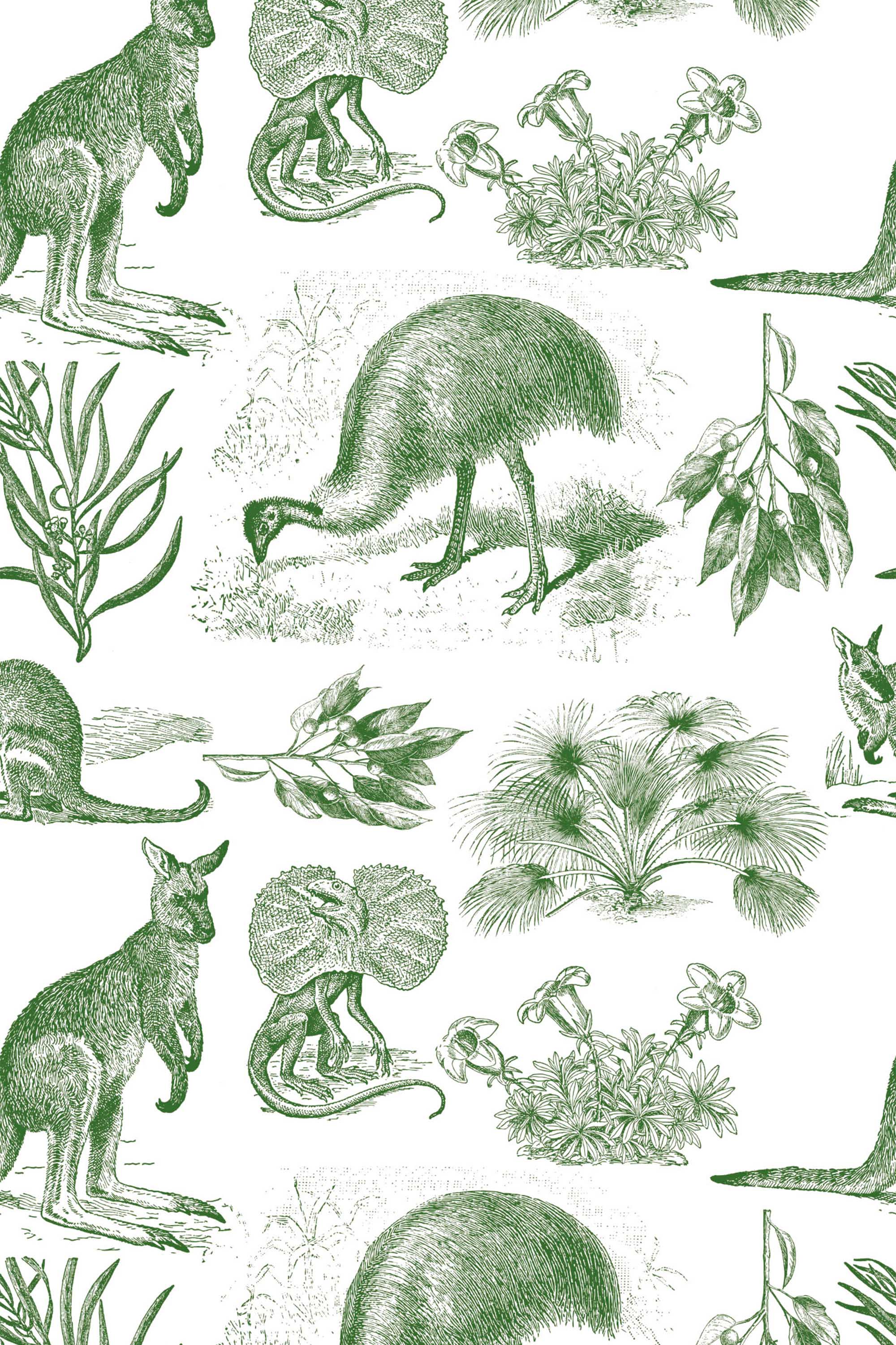 Fauna of Australia wallpaper brings a gentle nature-inspired charm to your space with its soft green sketches of plants and wildlife. This calming design creates a countryside atmosphere that works beautifully in bedrooms, living rooms, nurseries, or cozy reading nooks. The Australia Flora and Fauna peel and stick wallpaper is removable, self-adhesive, and non-pasted, making installation simple and renter-friendly. Australia Flora and Fauna is printed on eco-friendly, PVC-free materials using GreenGuard Certified inks. This wallpaper is safe for indoor use and ideal for renters or long-term decorating.