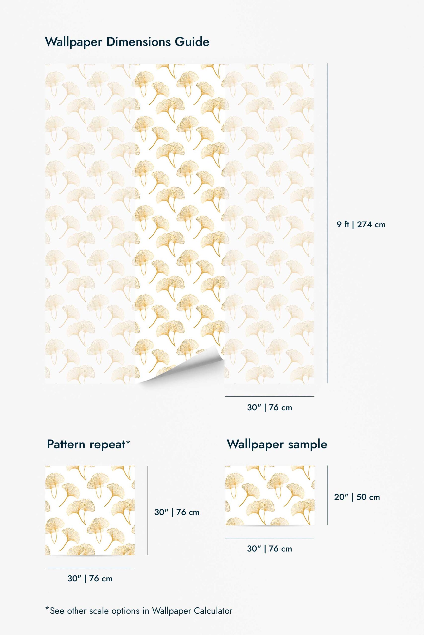 Faux Metallic Ginco wallpaper brings an elegant botanical style to your bedroom with its delicate ginco leaf pattern in serene white, accented by a faux gold effect on a light background. This sophisticated design transforms any space, adding a touch of minimalist beauty and modern charm to living rooms, home offices, and beyond. The Faux Metallic Ginco wallpaper is available in two options: an easy-to-apply peel and stick version that is self-adhesive and removable, and a traditional non-pasted version that requires glue for application. With its natural and serene aesthetic, the design invites the peaceful essence of nature into your home, creating a calming yet inspiring atmosphere. Our global team is passionate about crafting safe, PVC-free wall décor that brings joy and life to homes around the world.