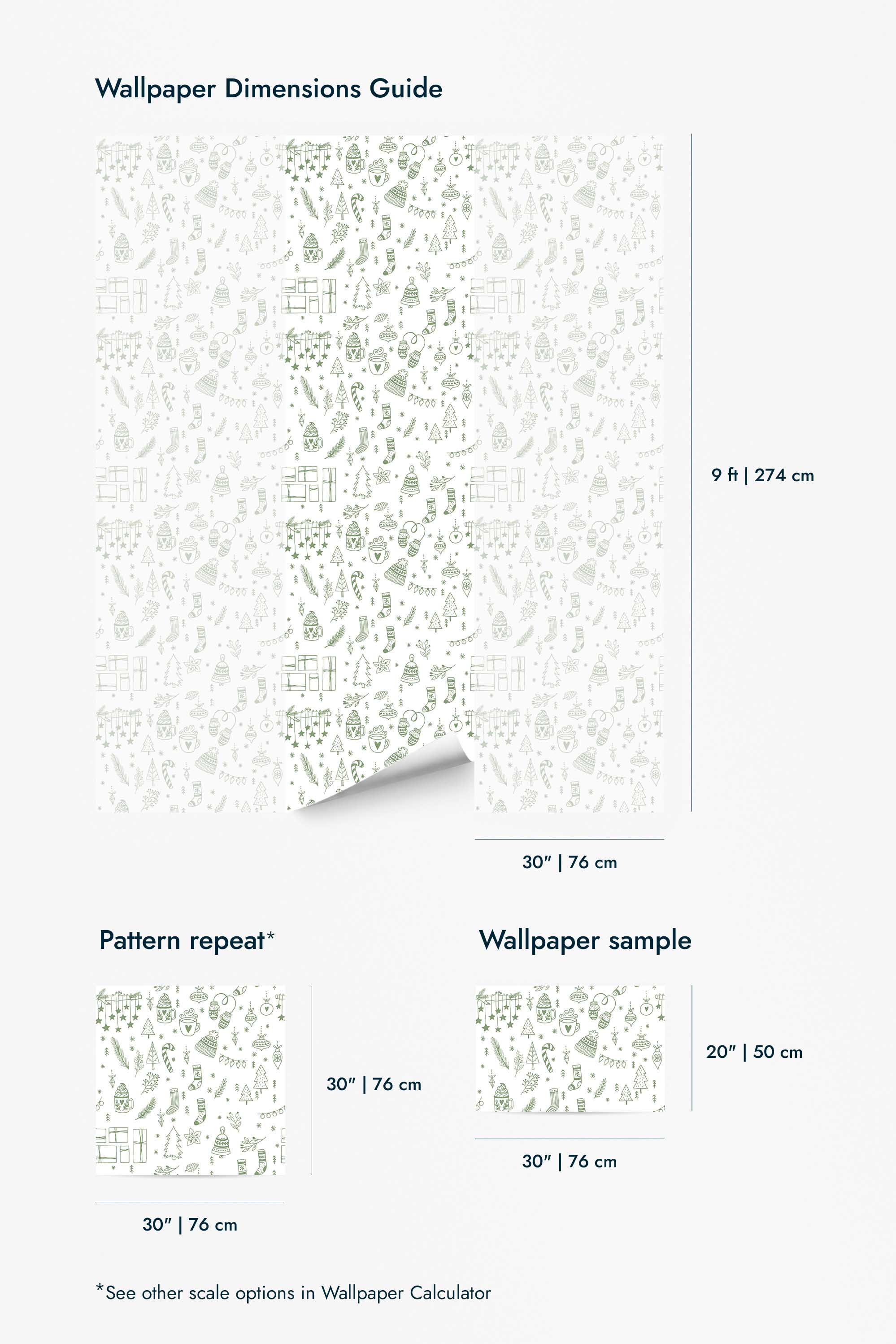 Festive Verdure wallpaper brings a whimsical and playful touch to any space with its neutral style and charming sage green doodles, making it an ideal choice for a kids’ room. This delightful design features cute Christmas doodles on a crisp white background, promising to infuse any room with a joyful and festive atmosphere, perfect for the winter season or to keep the holiday spirit alive year-round. Whether you’re decorating a nursery, playroom, or even adding a cozy touch to a living area, Festive Verdure can enhance your interiors with its playful elegance. Available in both peel and stick and non-pasted options, the peel and stick version is particularly easy to apply, requiring no glue and being removable. Plus, you can personalize your space with color customization, as the original sage green can be replaced with any of our standard shades or a custom color of your choice. Embrace the adventure of transforming your home with Festive Verdure, crafted by our passionate and innovative team committed to offering safe, PVC-free, and beautiful wall décor for every corner of the world.