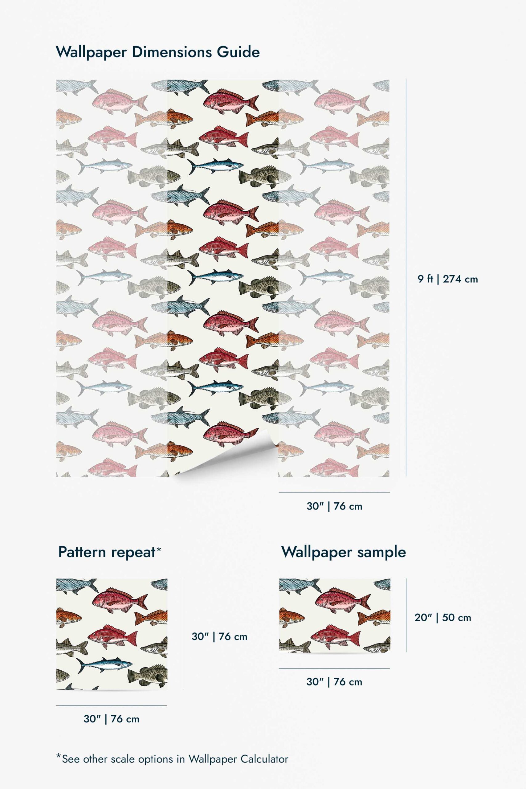 Fish wallpaper brings a vibrant nautical style to your hallway with its colorful, intricate fish motifs gracefully swimming across a soft beige backdrop. This delightful design, featuring red and earthy tones, creates a harmonious aquatic tapestry that can transform any space into a bold, dynamic marine haven. While it is perfect for hallways, the Fish wallpaper can also enhance living rooms or bathrooms, infusing them with a vintage and illustrative charm. Available in both peel and stick (self-adhesive – no glue needed, removable) and non-pasted options, the peel and stick version is easy to apply, making it a convenient choice for those looking to refresh their interiors effortlessly. With its detailed and artistic design, Fish adds an adventurous and optimistic flair to your home, inspired by the beauty of nature and crafted with care by our dedicated, global team.