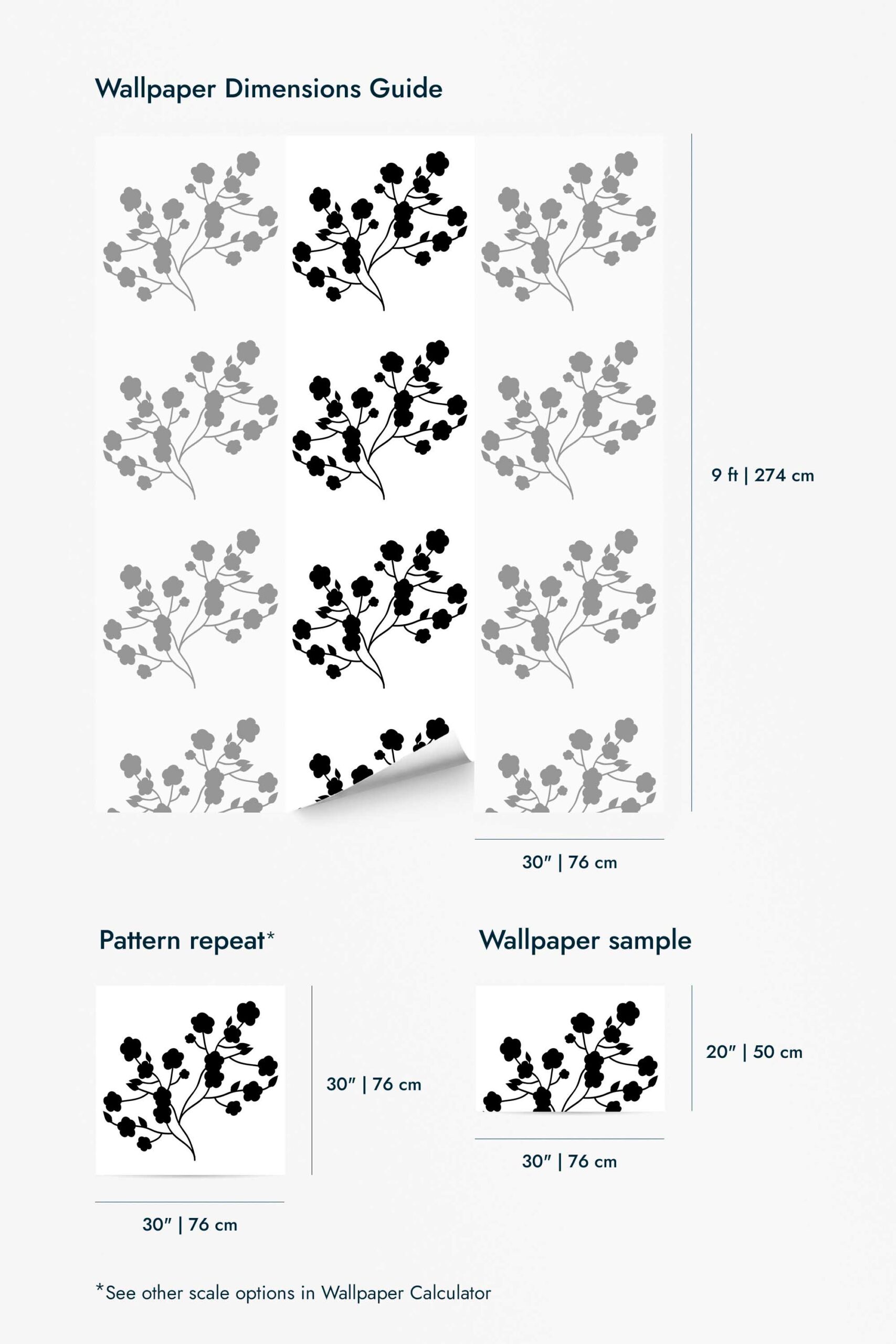 Floral print wallpaper in the Chinoiserie style captivates with bold black floral silhouettes elegantly entwining on a crisp white background, perfect for an accent wall. This striking monochrome motif creates a chic and timeless contrast, enhancing any room with its minimalist elegance. Whether adorning a living room, bedroom, or hallway, Floral print wallpaper transforms spaces into havens of style and sophistication. Available in peel and stick, which is easy to apply and removable, or traditional non-pasted options, it ensures versatile decorating possibilities. The original Black and white can be replaced with any of our standard shades or a custom color of your choice, offering endless customization to suit your unique taste. Our passionate team is dedicated to bringing nature’s inspiration into your home with safe, PVC-free wall décor that radiates joy and innovation.