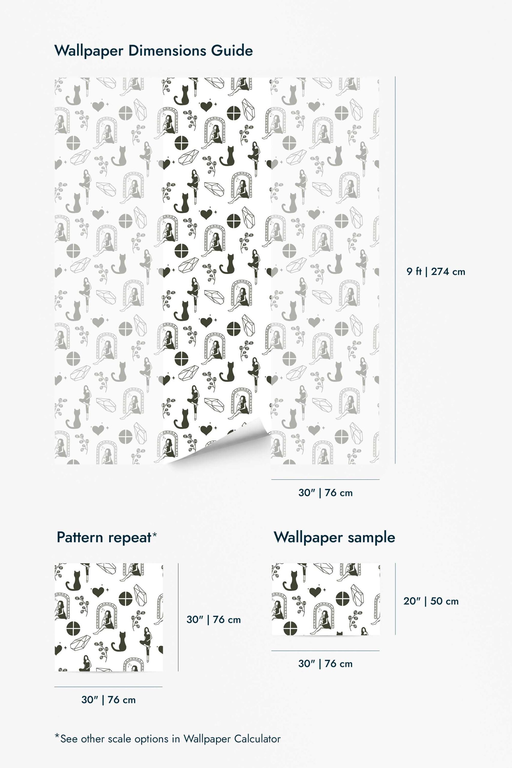 Girly wallpaper brings an eclectic style to life with its whimsical black and white pattern, perfect for transforming your powder room into a playful haven. This design, with its charming silhouettes of cats, seated figures, and geometric shapes intertwined with botanical elements, adds a touch of magic to any room, from cozy reading nooks to vibrant living areas. Available in both peel and stick (self-adhesive, no glue needed, removable) and traditional non-pasted (glue required) options, Girly wallpaper ensures a seamless fit for your creative vision. The original black and white can be replaced with any of our standard shades or a custom color of your choice, allowing you to tailor the look to your unique style. Let Girly inspire you with its heartwarming blend of nature and imagination, bringing joy and color to your home, crafted by a passionate team dedicated to safe, PVC-free décor.