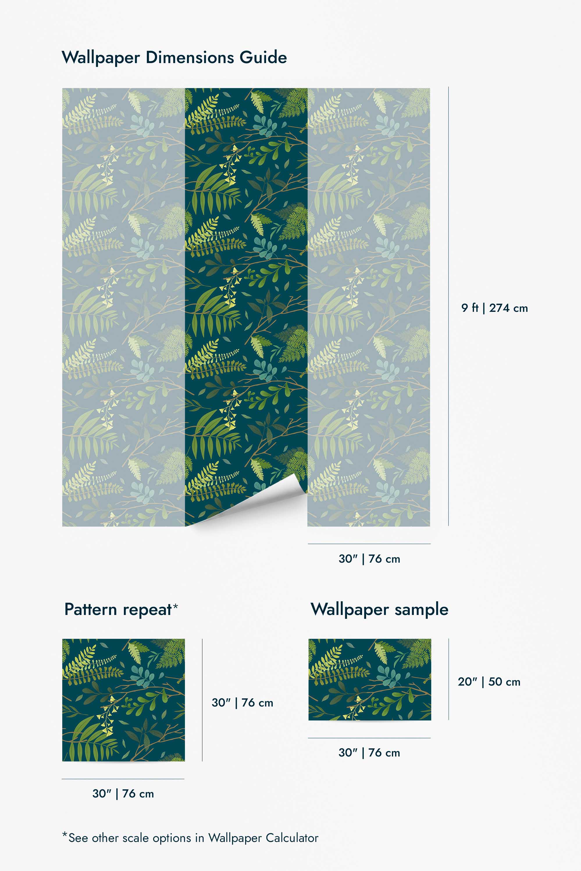 Green Forest wallpaper, with its lush botanical style and vibrant green foliage on a deep navy blue backdrop, is the perfect choice for creating a serene and calming atmosphere in your bedroom. This beautiful design transforms any space into a tranquil retreat, infusing natural, organic charm that resonates with a fresh and peaceful vibe. While it is particularly recommended for the bedroom, the Green Forest wallpaper can also enhance living rooms, home offices, or any area in need of a touch of nature-inspired elegance. You can easily apply the peel and stick option, which is self-adhesive and removable, making it a convenient choice for renters or those who love to refresh their decor often. For a more traditional application, the non-pasted version is available, offering a classic approach to wallpapering. Bring the beauty of nature indoors and let our dedicated team help you create a serene, PVC-free space with our innovative and inspiring designs.
