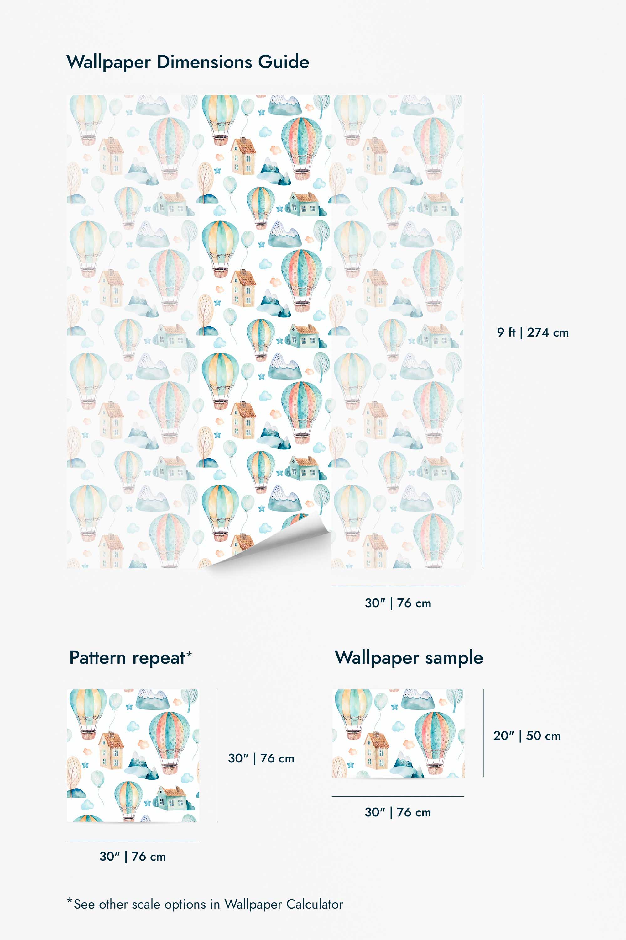 Green hot air balloon wallpaper brings a touch of novelty and adventure to your nursery with its whimsical pastel hot air balloons and cozy houses floating amidst soft blue clouds and mountains. This fun and dreamy design, with its watercolor hues, transforms any room into a playful landscape that inspires both little ones and adults alike. While it’s perfect for nurseries, its enchanting charm can enhance playrooms, bedrooms, or any space needing a splash of imaginative joy. The Green hot air balloon wallpaper is available in two options: the user-friendly peel and stick, which is self-adhesive and removable with no glue needed, and the traditional non-pasted version that requires glue application. Designed with passion and care, this wallpaper is a delightful way to bring nature’s inspiration and vibrant color into your home.