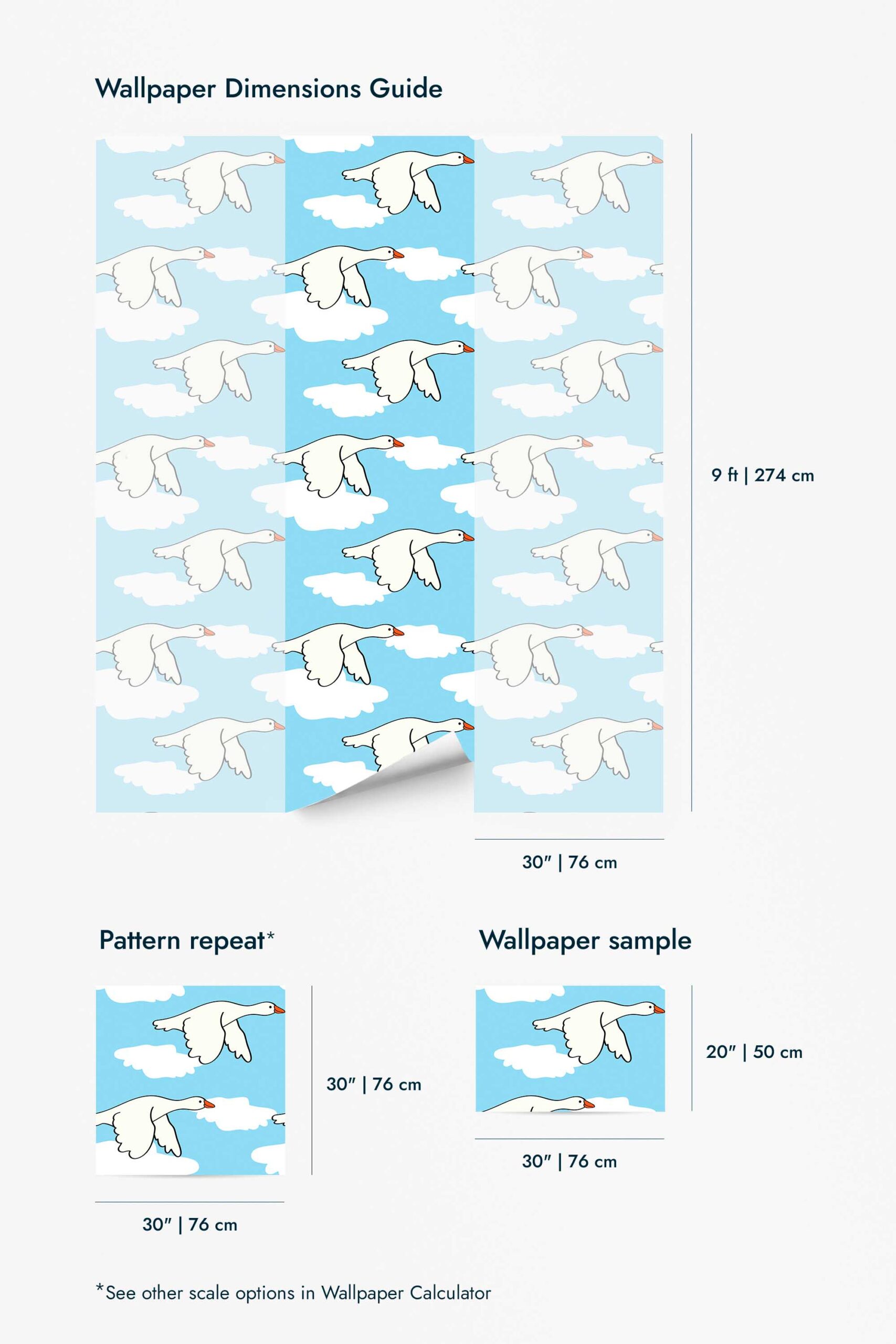 Happy Geese peel and stick wallpaper makes updating your home simple and stress-free. The non-pasted option offers a smooth, traditional finish for long-term projects. Both versions use PVC-free materials and GreenGuard Gold certified inks for vivid color and healthy indoor air quality. Smiling Geese wallpaper blends fun with modern charm, bringing warmth and character to everyday spaces. Inspired by nature and driven by a love of color, Fancy Walls creates wallpaper enjoyed worldwide.Wallpaper Highlights