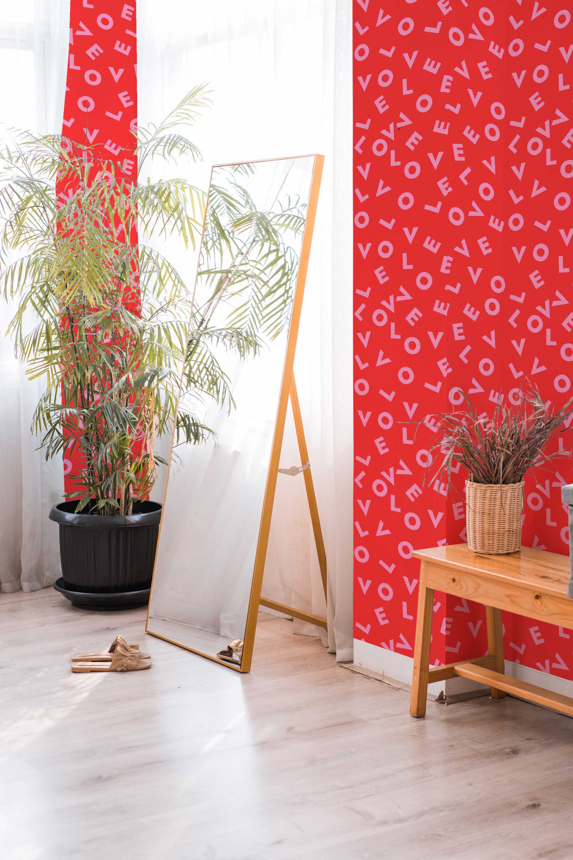 Love Letters wallpaper brings bold graphic energy to interiors with its striking red palette and playful typographic style, making it ideal for creative spaces, bedrooms, or statement walls. Scattered LOVE lettering fills the surface with confident romance and modern attitude. Love Letters peel and stick wallpaper installs easily thanks to its removable, self-adhesive construction, offering flexibility for quick updates or seasonal styling. Love Letters stands out as a fun design choice that celebrates love through bold geometry and color. Printed on eco-friendly, PVC-free materials using GreenGuard Certified inks, this wallpaper is safe for indoor use and ideal for renters or long-term decorating, and it is available in removable, self-adhesive, and non-pasted formats.