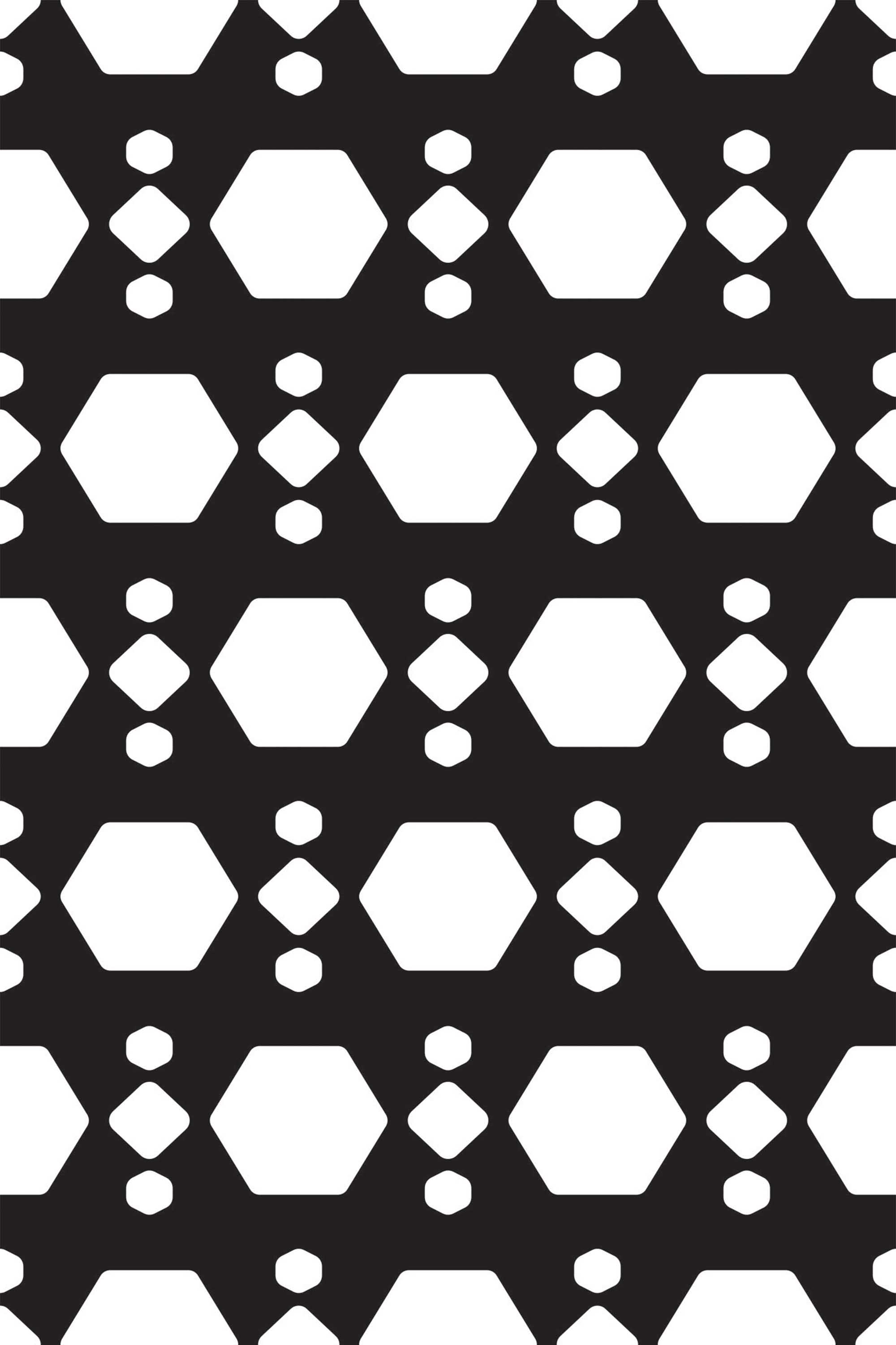 Monochrome Geometry wallpaper brings a bold, modern statement to your space with its striking black and white pattern of repeating hexagons and squares. The clean geometric design feels both dynamic and balanced, adding a touch of timeless sophistication to barber shops, offices, or creative studios.
