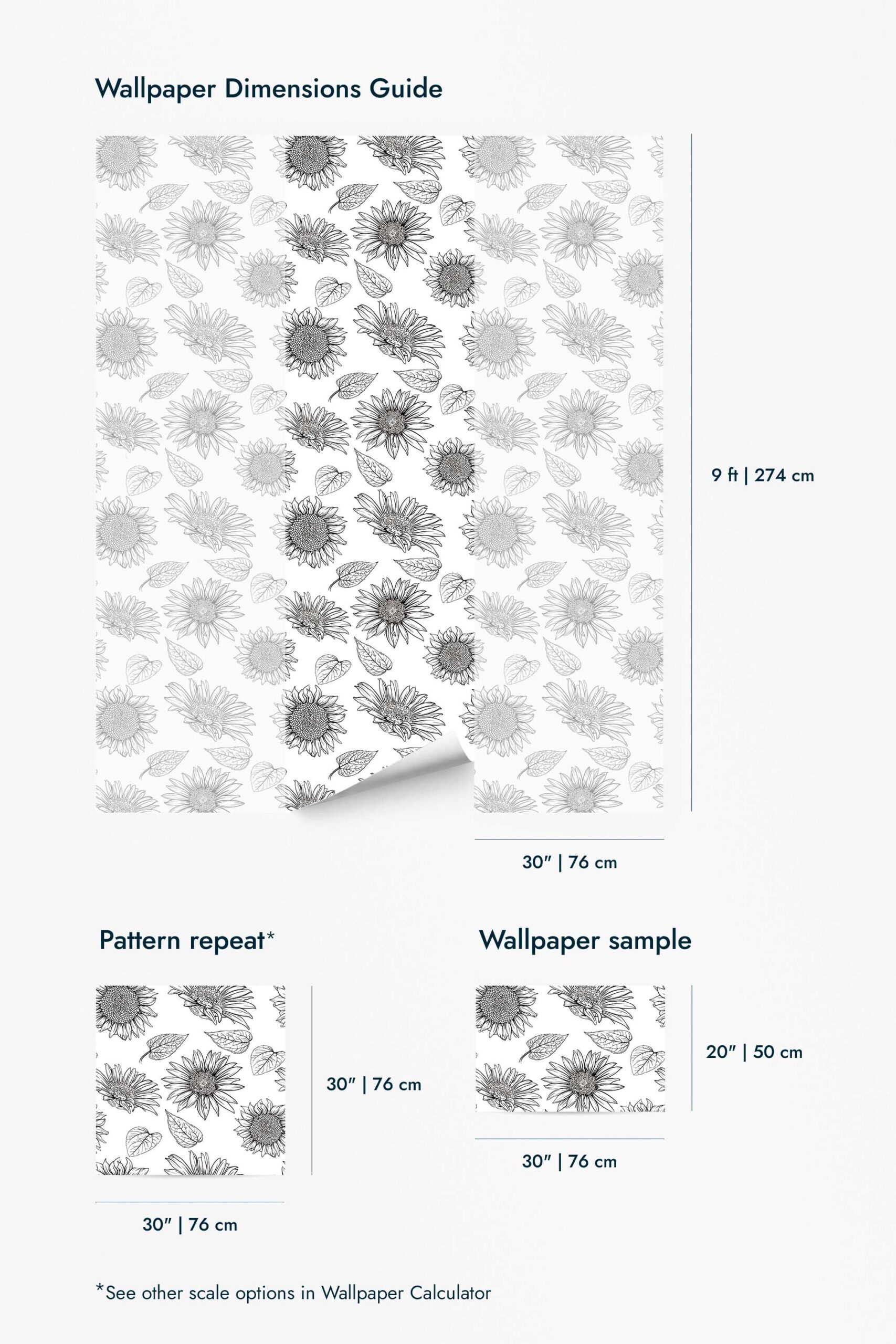 Monochrome Sunflower peel and stick wallpaper makes updating your room simple and stress-free. The non-pasted option offers a smooth, classic finish for long-term projects. Both versions use PVC-free materials and GreenGuard Gold certified inks for vivid color and healthy indoor air quality. Vintage Sunflowers wallpaper blends handdrawn charm with vintage refinement. The original black and white can be replaced with any of our standard shades or a custom color of your choice.Wallpaper Highlights