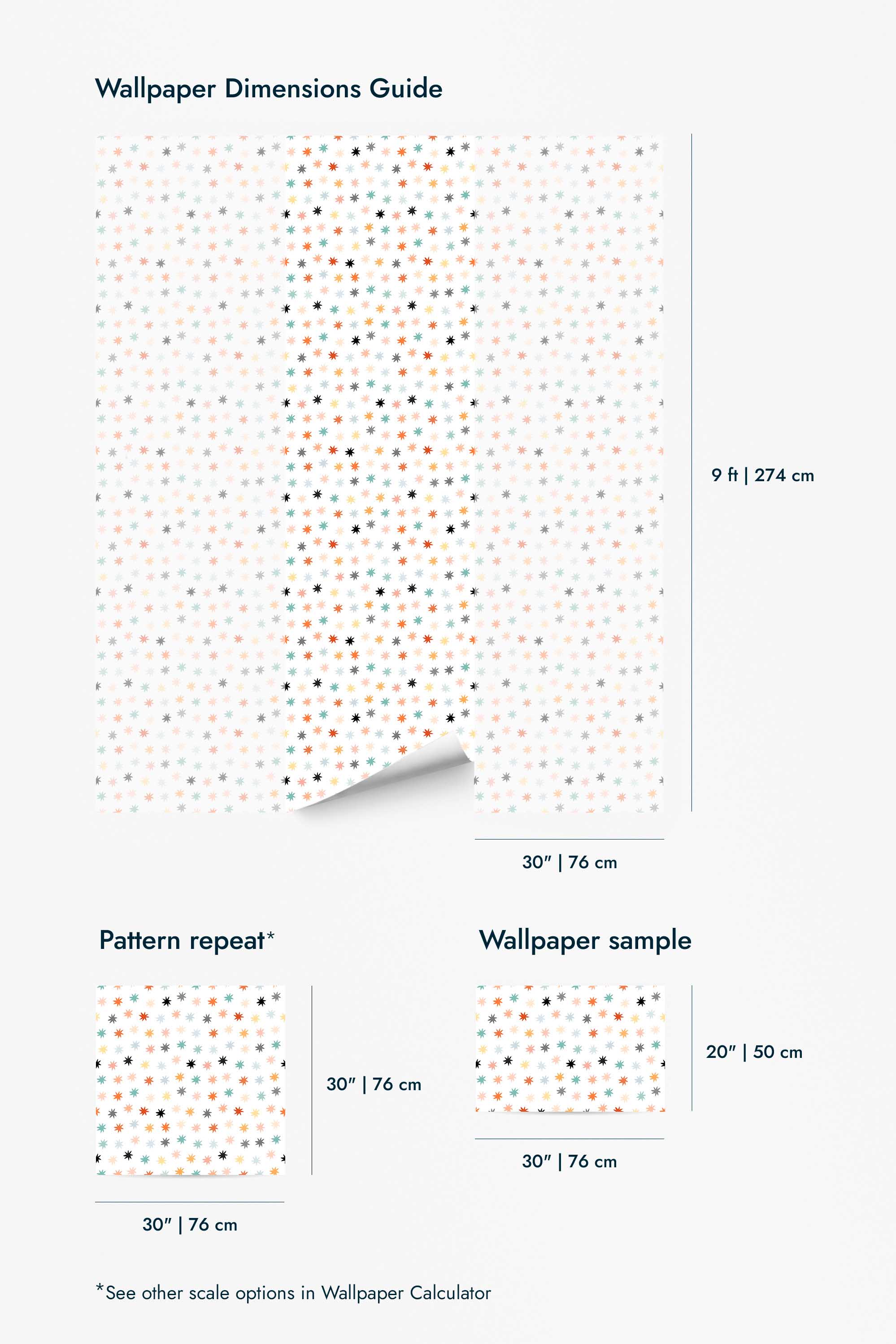 Multicolor stars wallpaper brings a touch of retro charm and vibrant flair to your kids’ room with its playful, multicolored starburst pattern set against a crisp white background. This whimsical design, accented with pops of black, adds a cheerful and dynamic vibe to any space, making it perfect not only for children’s rooms but also for playrooms or even a creatively styled home office. Multicolor stars wallpaper is available in two options: the easy-to-apply peel and stick (self-adhesive – no glue needed, removable) for quick and hassle-free decoration, and the traditional non-pasted option for those who prefer a more classic application method. Let the vintage-inspired, colorful essence of Multicolor stars transform your walls, as we strive to bring joy, color, and safe, PVC-free beauty to homes around the world with our innovative designs.