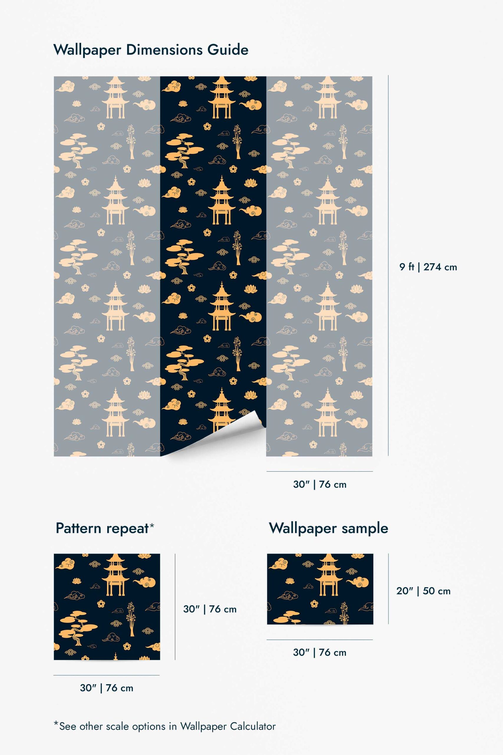 Navy blue china abstract wallpaper is a stunning Chinoiserie-style addition to any living room, bringing together elegant navy blue and beige motifs of pagodas, stylized trees, and swirling clouds. This serene and harmonious design doesn’t just elevate living areas—it breathes tranquil elegance into any space, creating a meditative atmosphere perfect for relaxation. The Navy blue china abstract wallpaper is available in two options: an easy-to-apply peel and stick version, which is self-adhesive and removable, and a traditional non-pasted version, which requires glue. Let this decorative wallpaper transform your interiors, inviting a touch of oriental charm and inspiration from nature into your home with its tranquil and elegant flair.