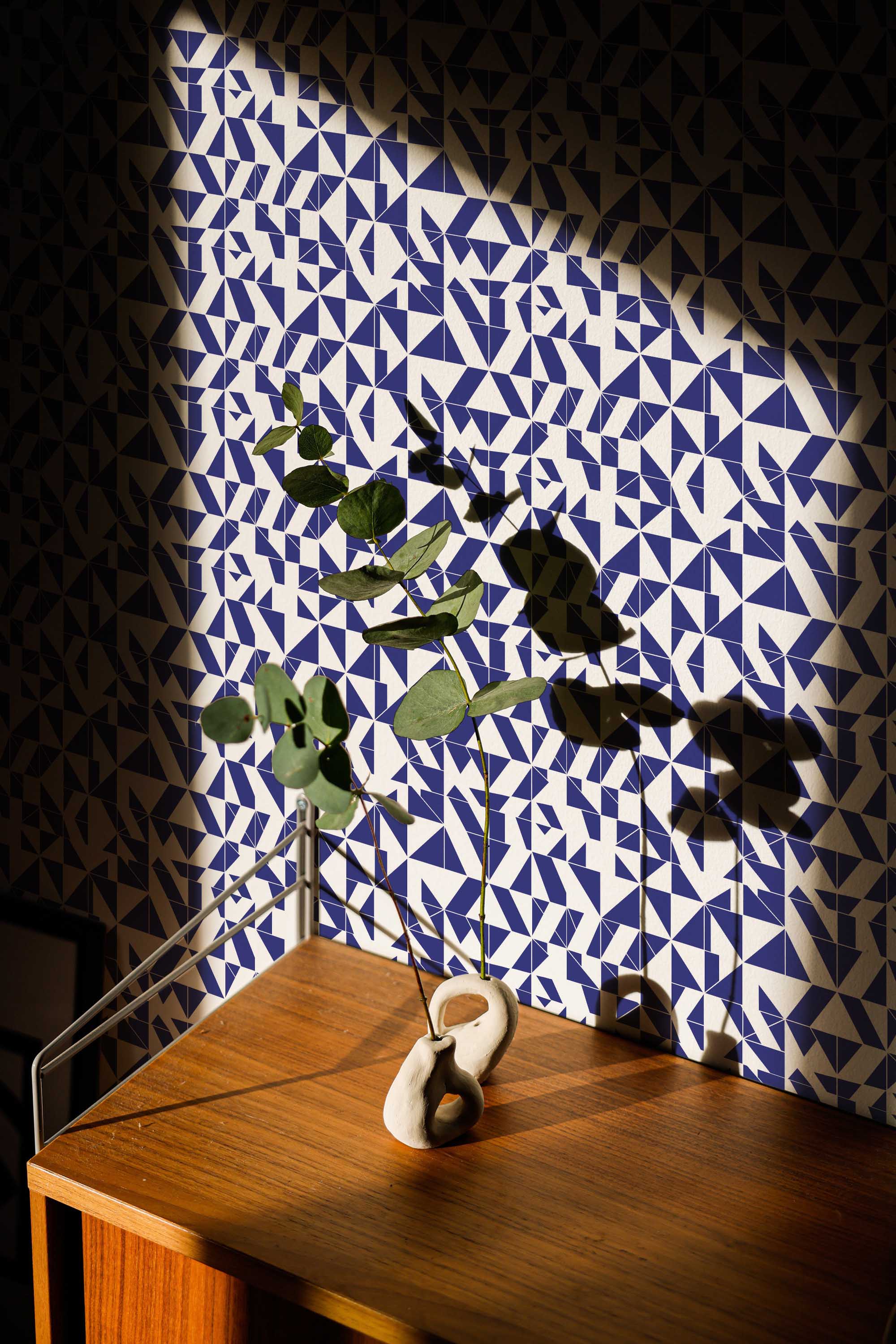 Geometric wallpaper adds rhythm, balance, and visual energy to any interior.