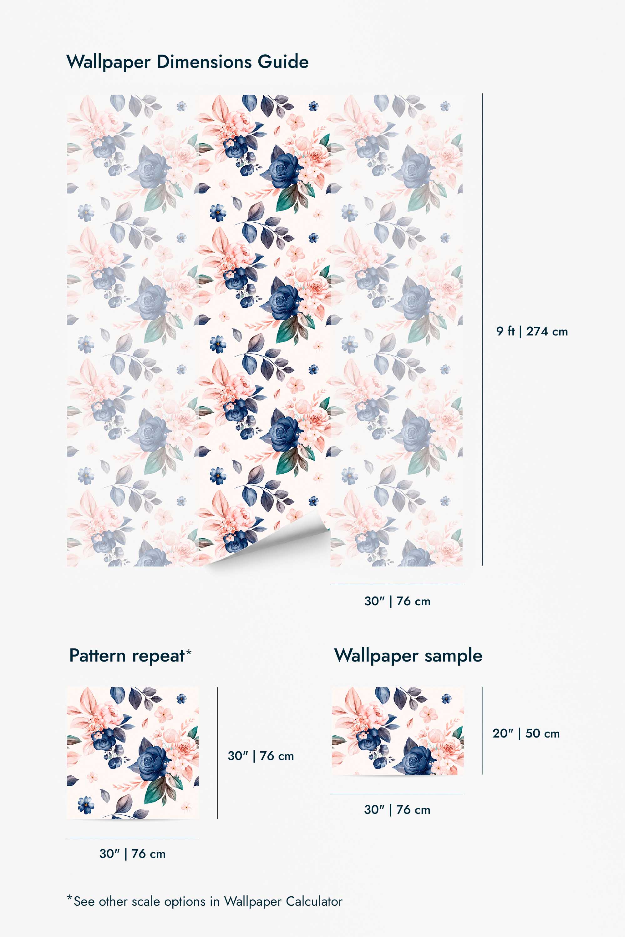 About Pink and navy floral Wallpaper
