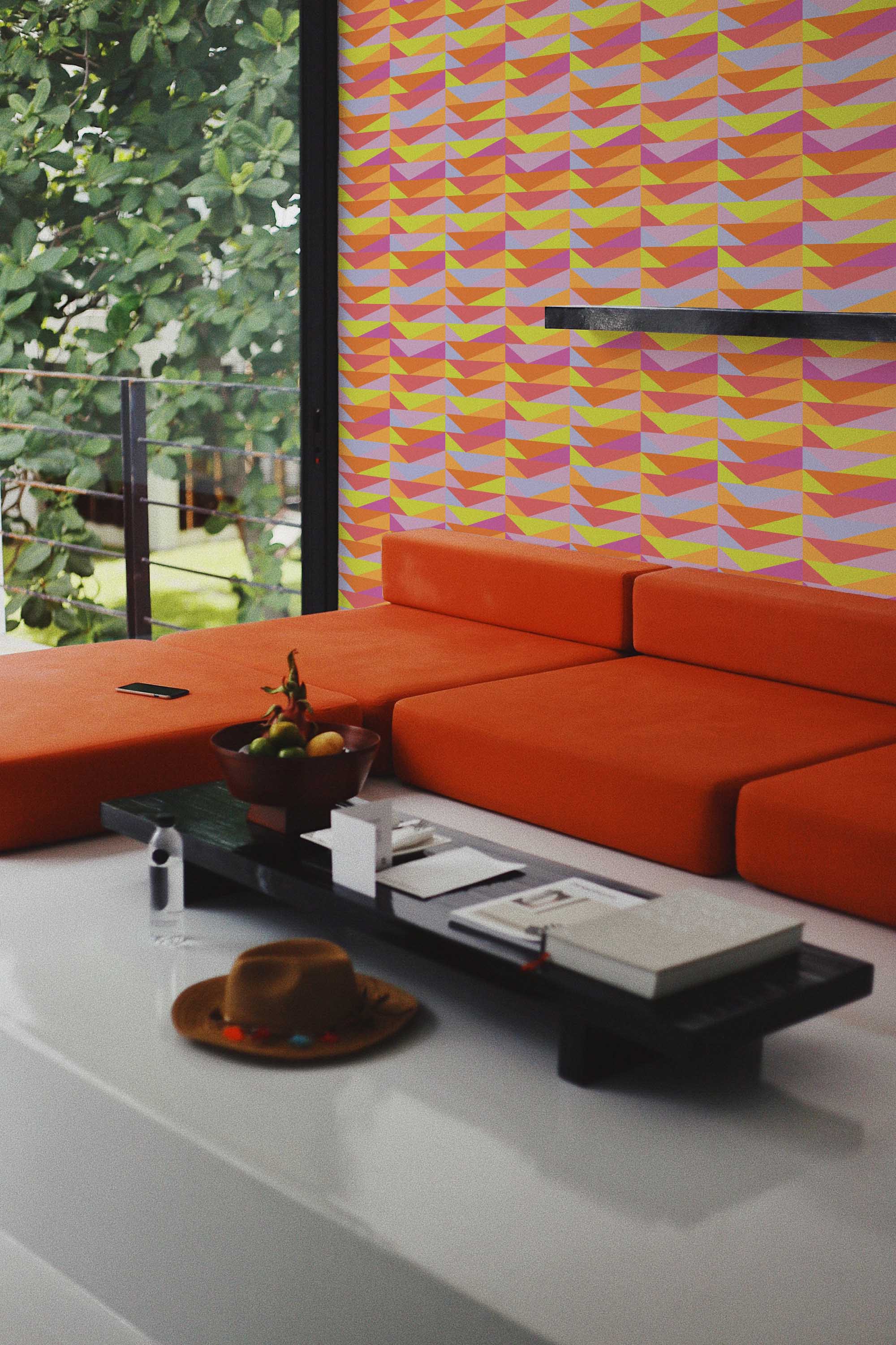 Geometric wallpaper adds rhythm, balance, and visual energy to any interior.