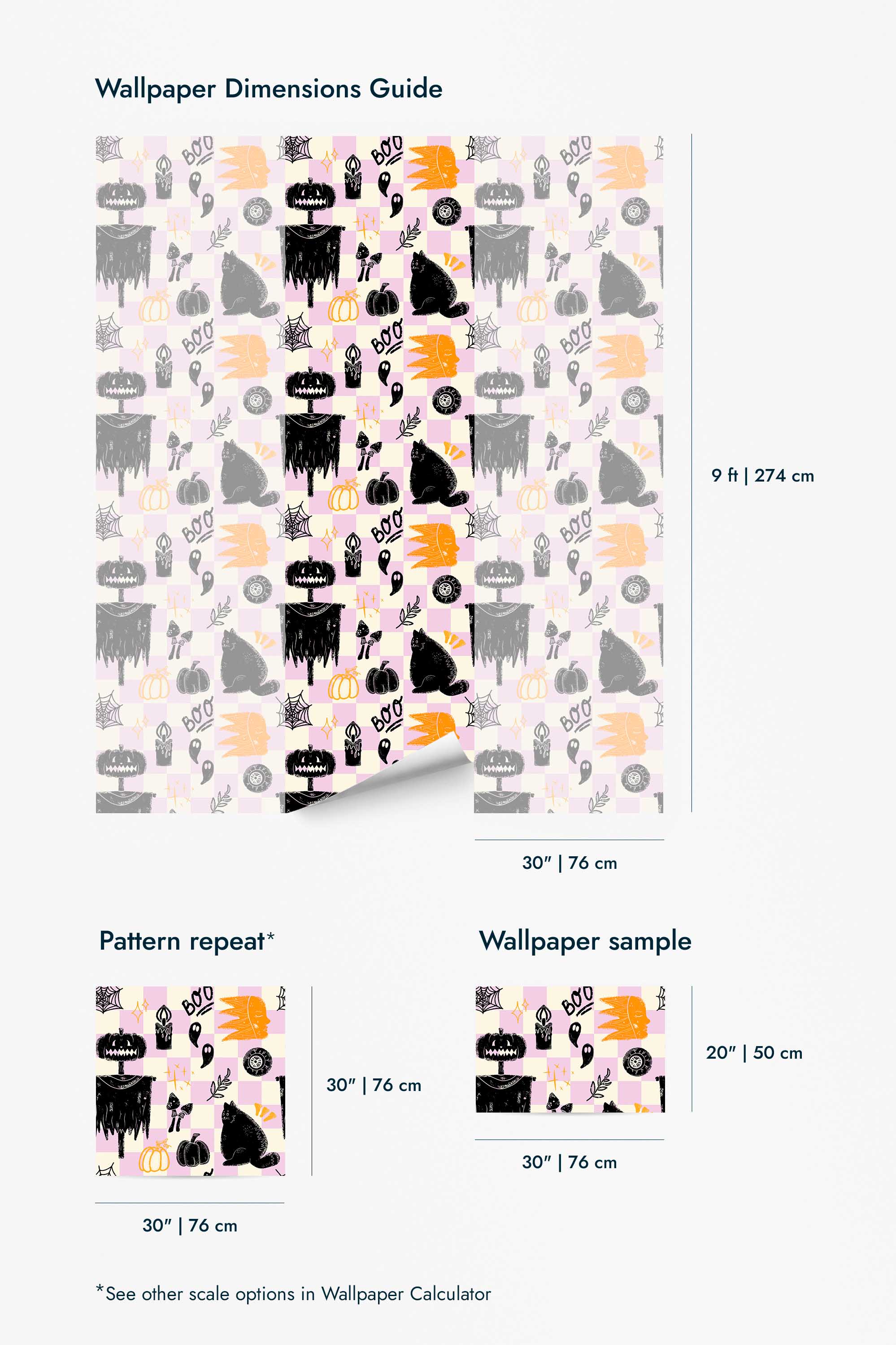 The Purple Checkered Halloween Cat wallpaper is a whimsical novelty design that combines a pastel aesthetic with a playful check pattern, perfect for brightening up a kids’ room. This cool, slightly funky Halloween design features charming elements like ghosts, pumpkins, and stars, making it a delightful addition to any space in need of a magical touch. While it’s recommended for children’s rooms, its enchanting style can enhance nurseries, playrooms, or even add a touch of spooky whimsy to a creative corner in your home. The Purple Checkered Halloween Cat wallpaper is available in two options: a peel and stick version that’s self-adhesive and easy to apply, and a traditional non-pasted version that requires glue. Embrace the joy of bringing a splash of color and fun into your home with the Purple Checkered Halloween Cat, crafted by our passionate team committed to creating beautiful, PVC-free wall décor.