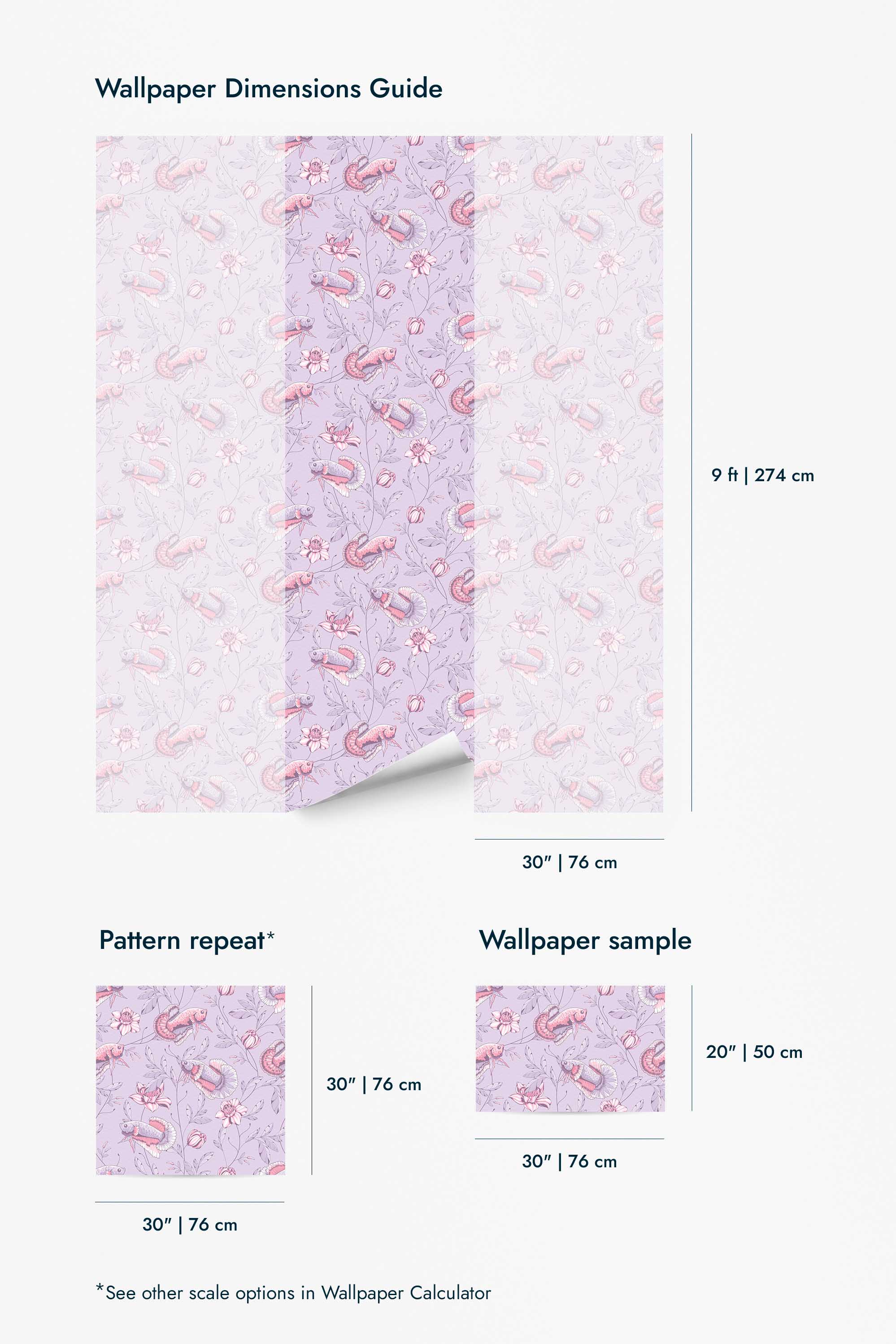 Purple Fish wallpaper in a Chinoiserie style brings a touch of elegance and tranquility to any bathroom with its enchanting lavender palette. Graceful lavender and pink fish dance among delicate floral motifs, creating a serene and whimsical underwater tapestry that can transform any space into a calming retreat. While perfect for bathrooms, Purple Fish wallpaper’s ornamental design also enhances bedrooms, living rooms, or any area in need of a serene aquatic touch. Available in two options, the peel and stick version is easy to apply with no glue needed and can be removed without hassle, while the traditional non-pasted option requires glue for application. Immerse your home in the beauty of nature with Purple Fish, a stunning way to bring life and color into your surroundings.