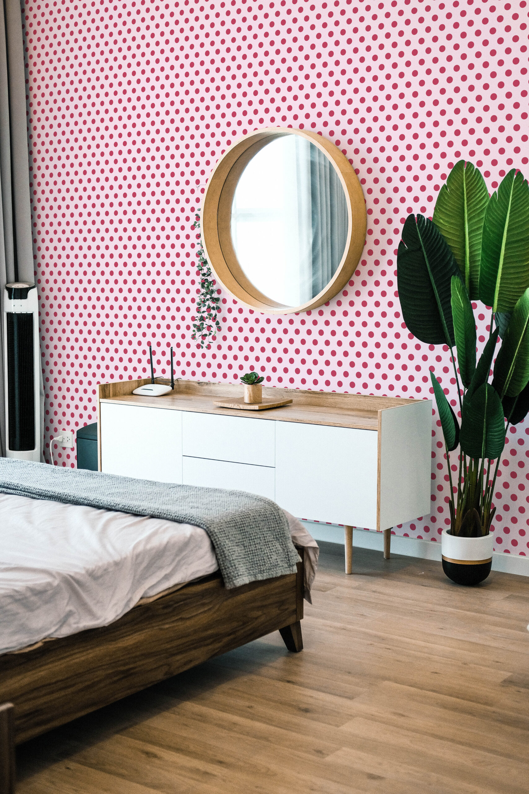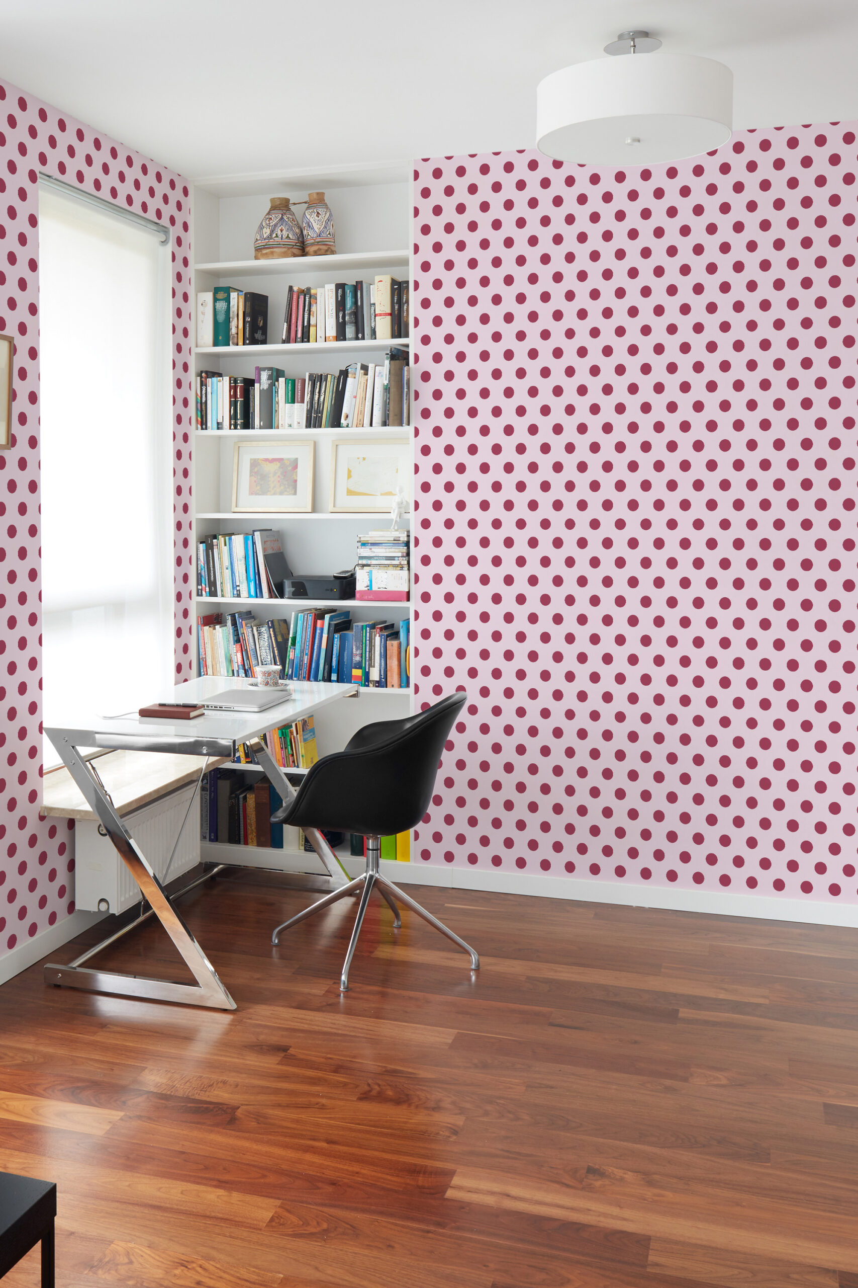 Polka dot wallpaper brings playful charm and timeless elegance to walls, blending whimsy with sophistication.