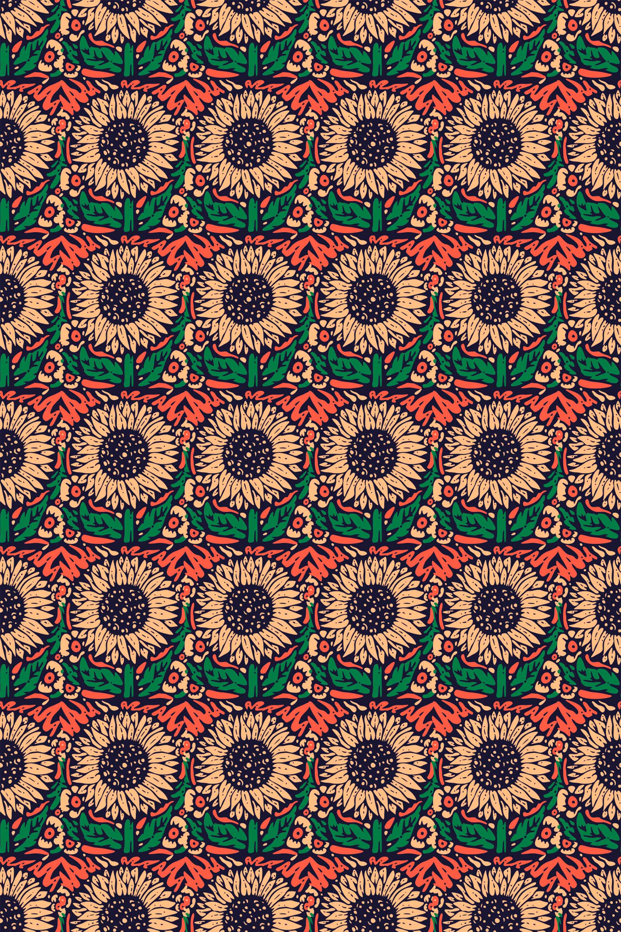 Retro Sunflower Print wallpaper brings botanical energy to your living room or dining area with rich blue tones and warm earthy sunflowers in a dense floral repeat. The stylized blooms create a bold vintage mood while keeping the pattern balanced and decorative. The Retro Sunflower Print peel and stick wallpaper offers a removable and self-adhesive solution for quick updates, and it is also available as non-pasted for traditional paste-the-wall installation. Retro Sunflower Print blends retro charm with earthy floral detail, making it a striking choice for feature walls. Printed on eco-friendly, PVC-free materials using GreenGuard Certified inks, this wallpaper is safe for indoor use and ideal for renters or long-term decorating.