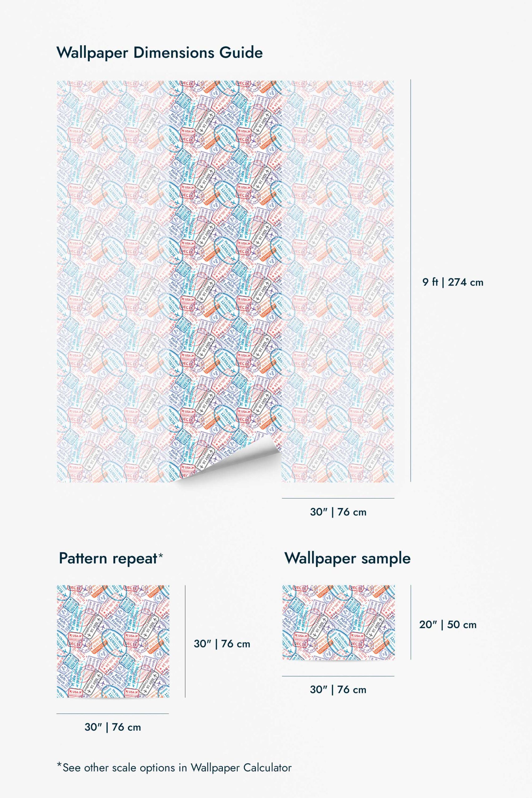 Stamp wallpaper is a novelty design bursting with a kaleidoscope of colors, featuring bold blue accents, perfect for transforming an accent wall into a vibrant travel-inspired tapestry. This fun pattern brings an adventurous spirit into any room, creating a dynamic atmosphere that inspires exploration and global journeys. Stamp wallpaper is available in two options to suit your needs: the easy-to-apply peel and stick version, which is self-adhesive and removable, or the traditional non-pasted option that requires glue for application. Let the vivid passport stamp collage of Stamp fill your space with the joy of adventure, as our passionate team strives to bring safe, PVC-free, and beautiful wall décor into homes worldwide.