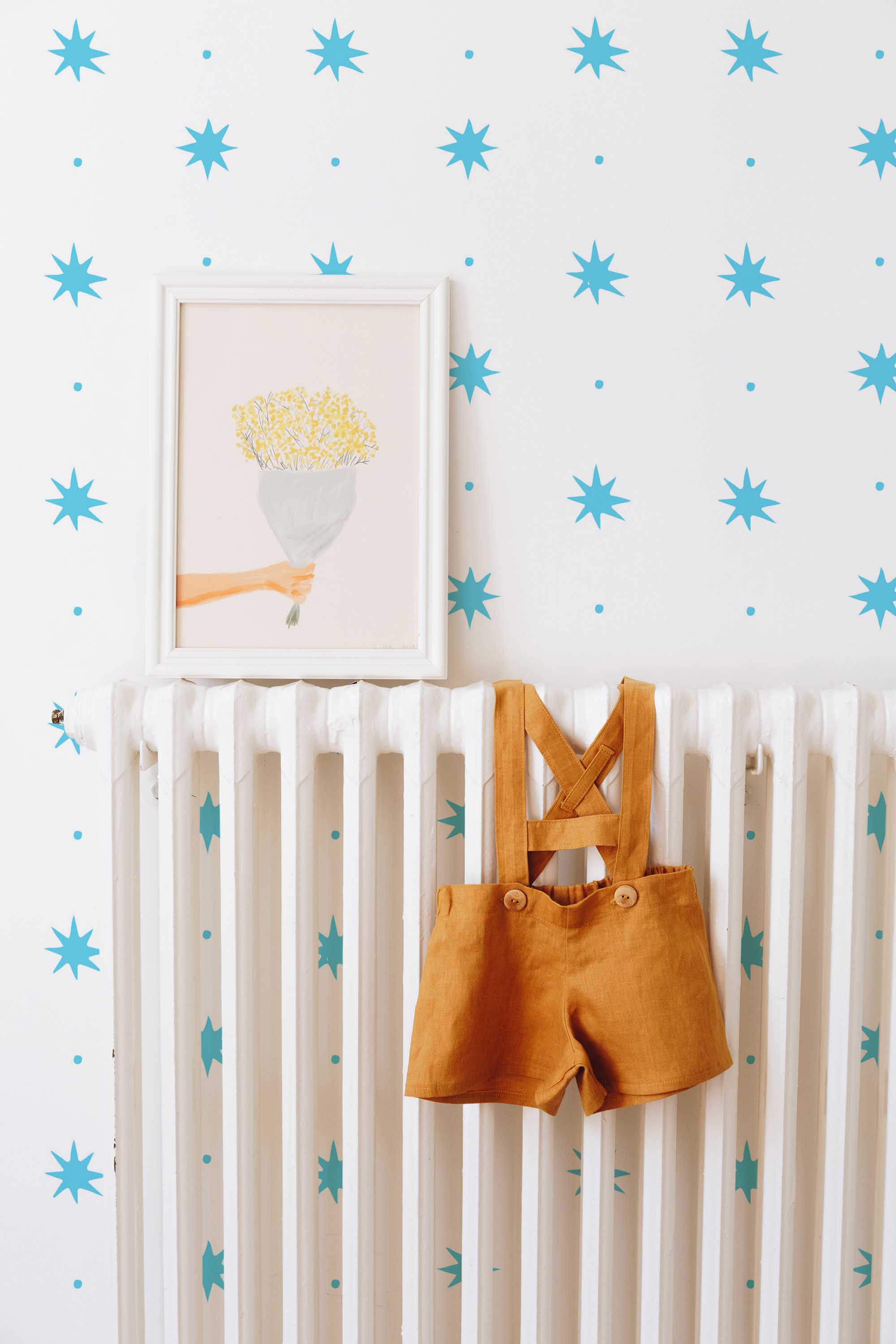Star Dots peel and stick wallpaper uses a self-adhesive polyester textile for easy installation and clean removal. The non-pasted option uses FSC mix-certified non-woven material for a smooth finish. Both wallpaper types are PVC-free and printed with GreenGuard Gold certified inks for vivid, safe color. The original blue and white can be replaced with any of our standard shades or a custom color of your choice. Inspired by nature and passionate about color, Fancy Walls designs décor loved worldwide.Wallpaper Highlights