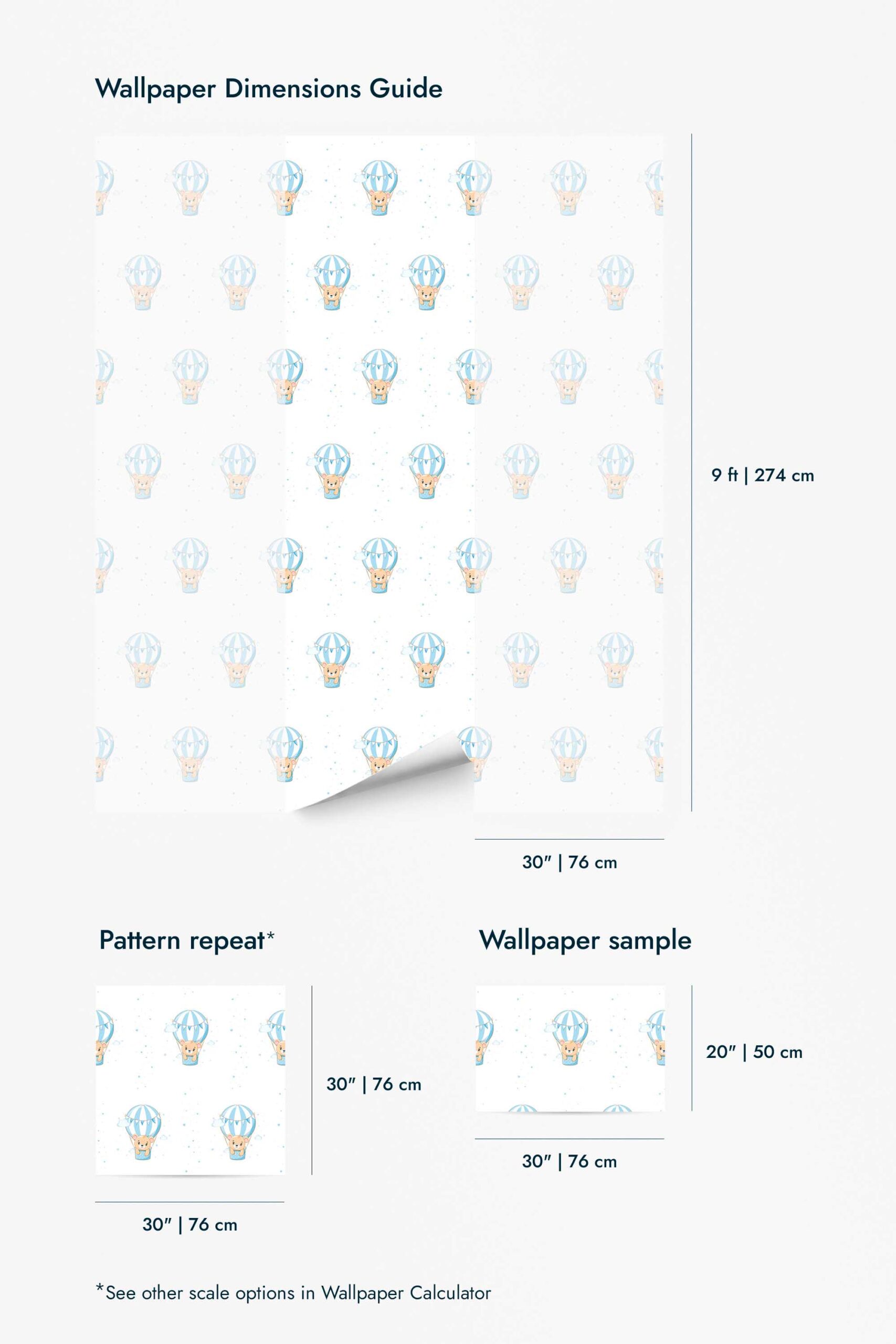 The Teddy Air Balloon peel and stick wallpaper installs easily with its self-adhesive backing, while the non-pasted option provides a smooth, lasting finish. Both wallpaper types are PVC-free and printed with GreenGuard Gold certified inks for vivid, safe color. Inspired by nature and passionate about color, Fancy Walls brings global creativity into everyday spaces.Wallpaper Highlights