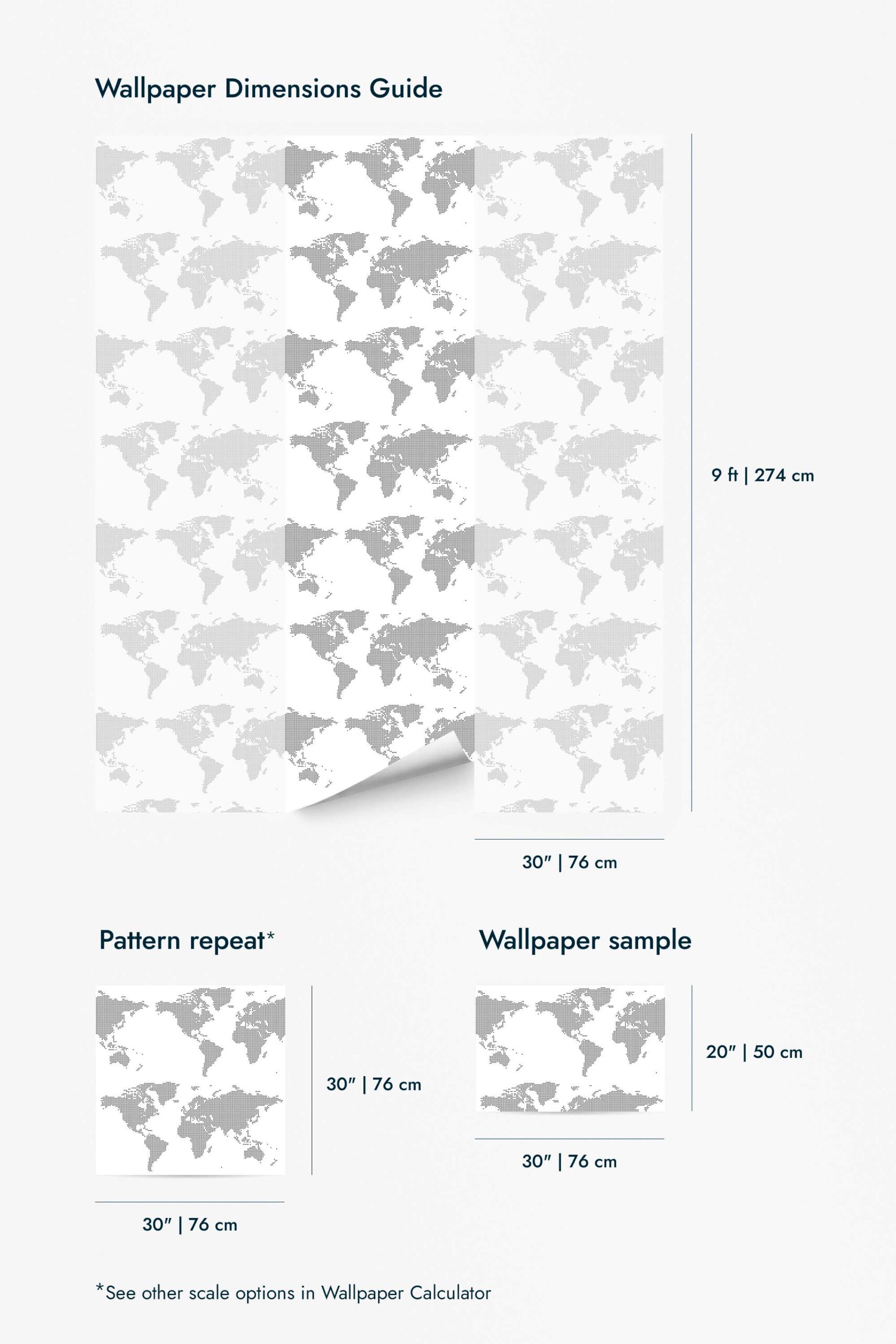 Teen Room World Map peel and stick wallpaper makes updating your space simple and flexible. The non-pasted option offers a smooth, traditional finish for long-term projects. Both versions use PVC-free materials and GreenGuard Gold certified inks for vivid color and healthy indoor air quality. Dotted World Map wallpaper blends modern minimalism with a global theme. The original black and white can be replaced with any of our standard shades or a custom color of your choice.Wallpaper Highlights