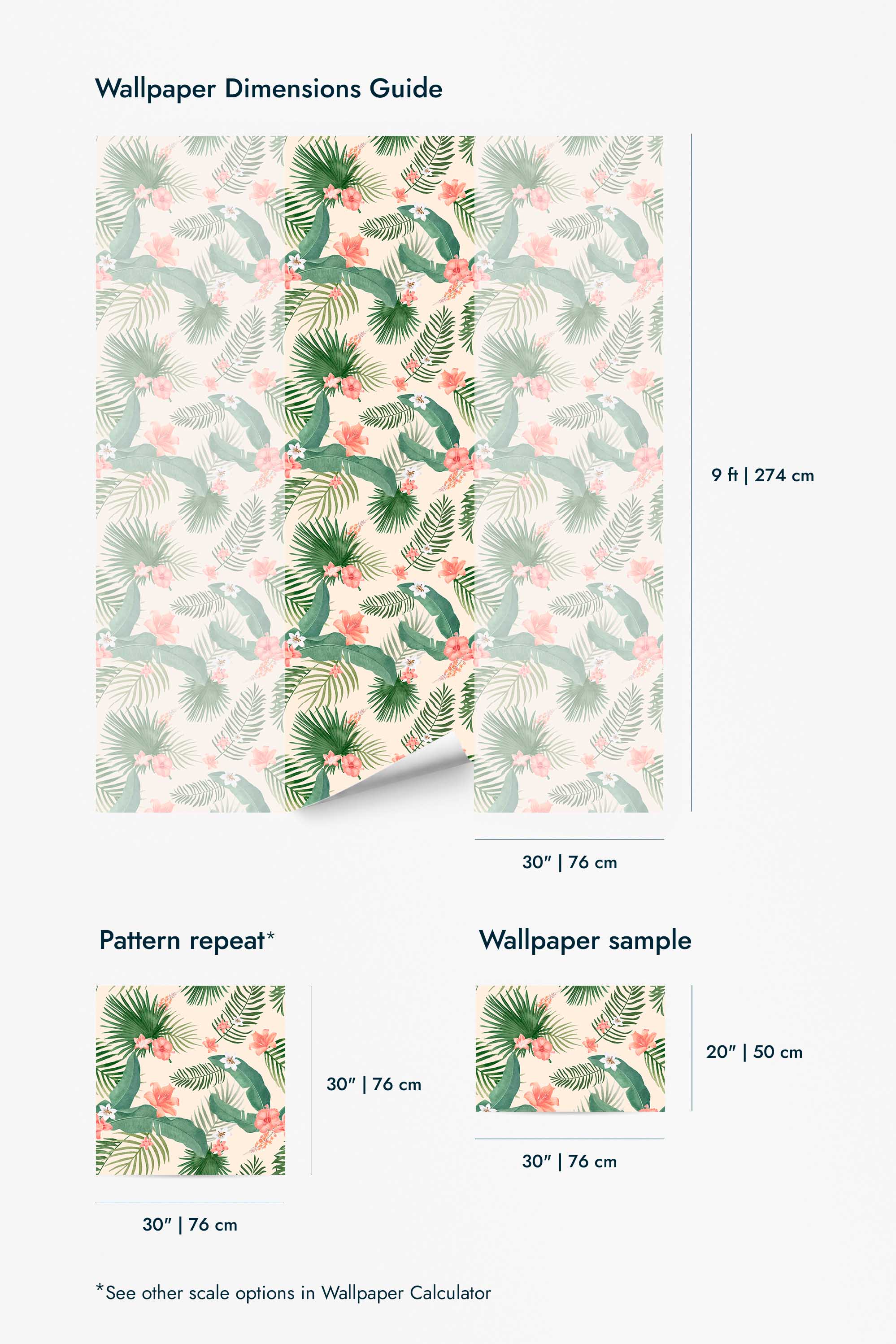 Tropical wallpaper is your gateway to a vibrant, exotic paradise, bringing a lush floral style into your SPA with its colorful blend of green leaves and coral blooms on a soothing cream background. This captivating design transforms any space into a serene, botanical haven, perfect for adding a touch of paradise to living rooms, bedrooms, or any area needing a splash of inspiration. Tropical wallpaper is available in two options: the peel and stick version, which offers an easy application with its self-adhesive, removable features, and the traditional non-pasted option that requires glue. Let Tropical infuse your home with the vibrant spirit of nature, designed by a passionate team committed to crafting safe, PVC-free wall décor that brings joy and color to homes worldwide.