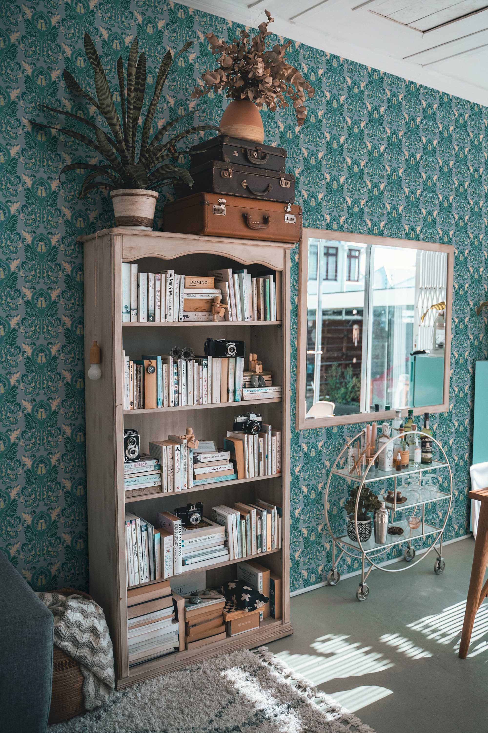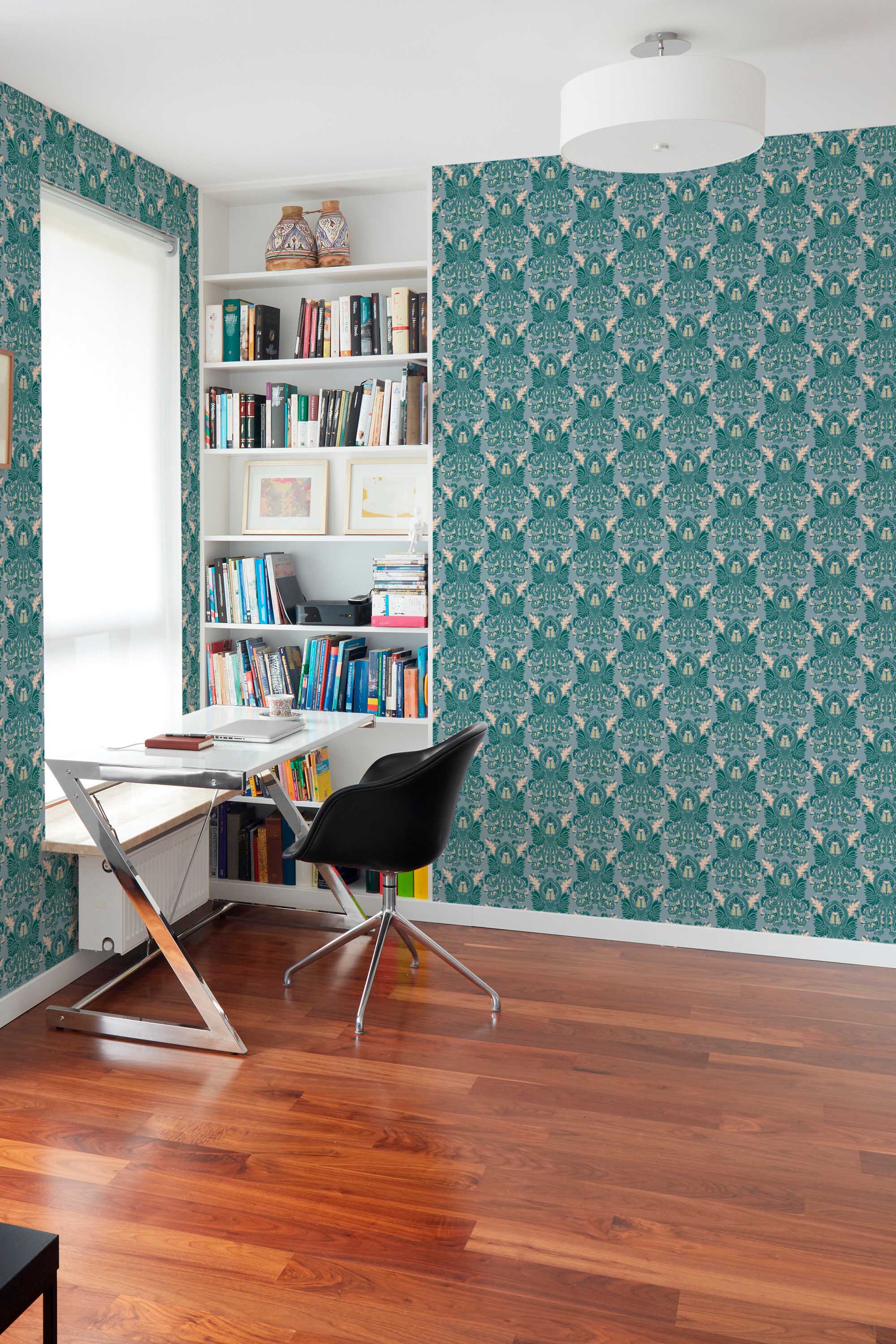 Emerald green wallpaper brings rich elegance and jewel-toned depth to any interior with timeless, luxurious appeal.