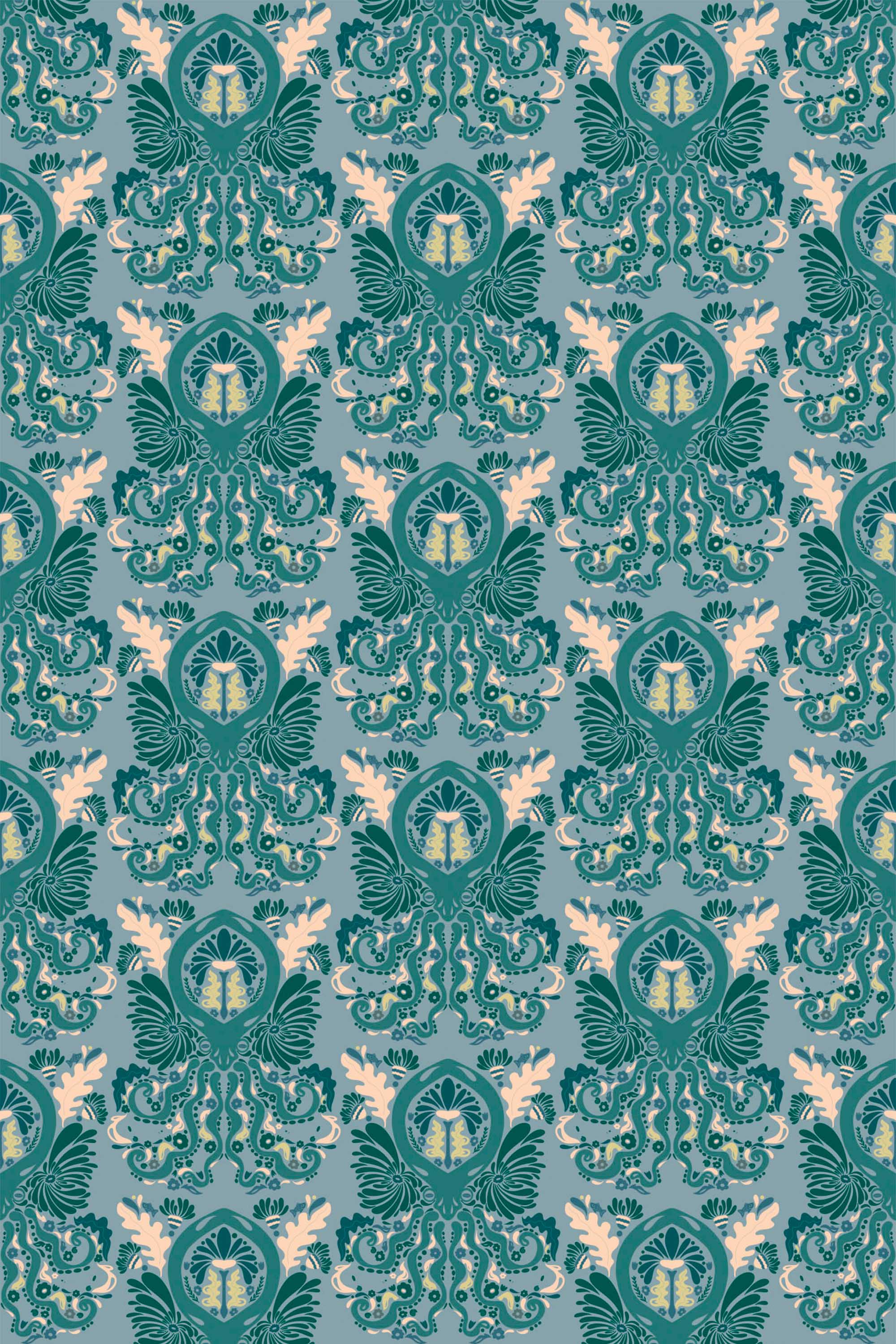 Victorian Octopus peel and stick wallpaper installs easily using a self-adhesive polyester textile, making it ideal for flexible updates. The non-pasted option offers a smooth, traditional finish with FSC mix-certified non-woven material. Both wallpaper types are PVC-free and printed with GreenGuard Gold certified inks for vivid, safe color. Inspired by nature and passionate about color, Fancy Walls designs wallpaper loved worldwide.Wallpaper Highlights