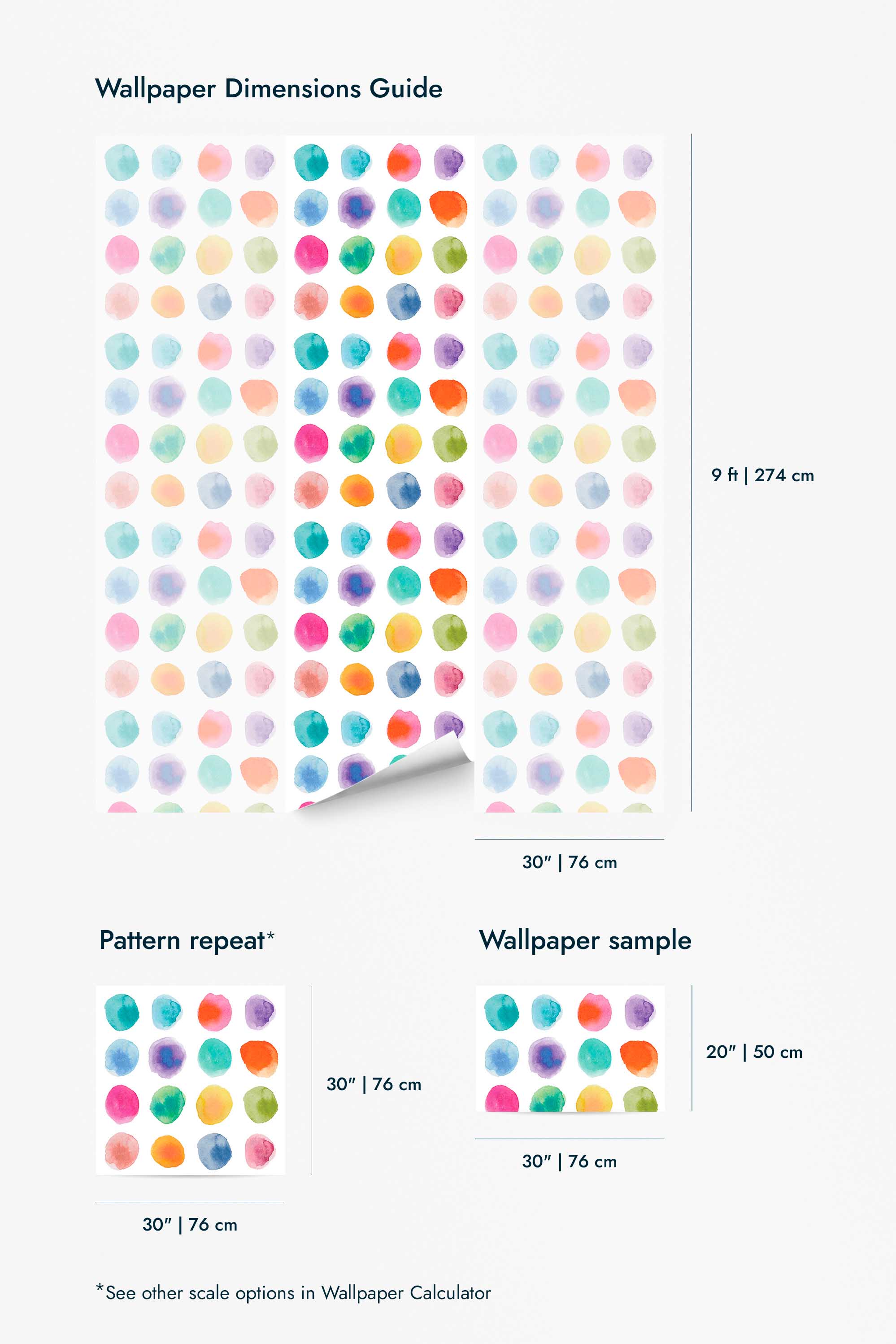 Watercolor dots wallpaper brings an eclectic and cheerful touch to your child’s room with its vibrant array of watercolor dots accented by serene blues. This playful and whimsical pattern infuses energy and artistic flair into any space, making it a delightful choice beyond just the kids’ room—perfect for adding fun and vibrancy to playrooms or creative corners. The Watercolor dots design is available in two options: an easy-to-apply peel and stick version, which is self-adhesive and removable without the need for glue, and a traditional non-pasted option that requires glue application. Our passionate team is dedicated to crafting beautiful, PVC-free wall décor that transforms homes with joy and color, making Watercolor dots wallpaper a safe and innovative choice for your interiors.