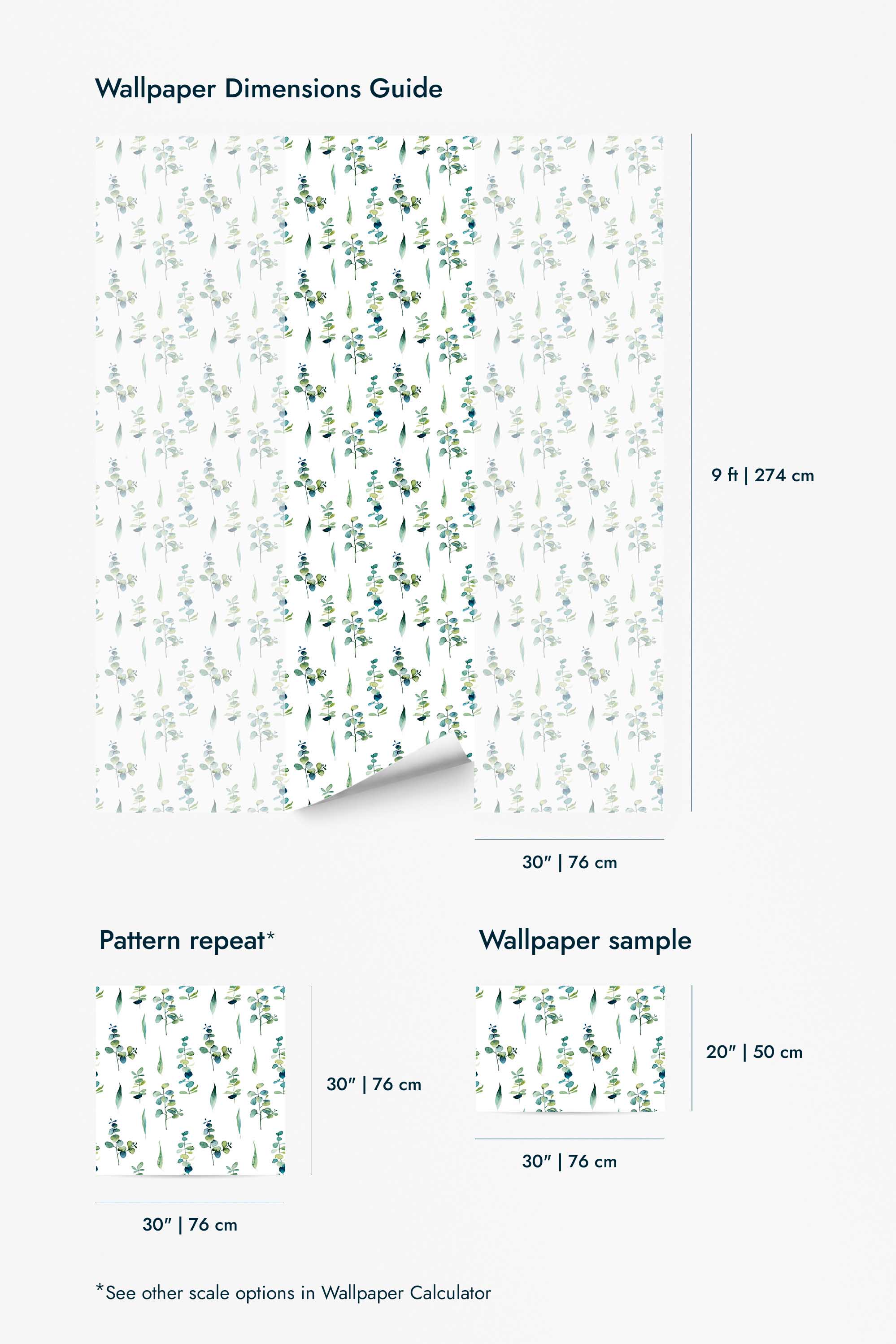 Watercolor eucalyptus leaf wallpaper offers a botanical style with soothing green and blue hues on a crisp white background, making it perfect for creating a serene and calming atmosphere in your bathroom. This tranquil design brings a fresh, minimalist touch to any room, effortlessly enhancing spaces beyond the bathroom, such as a bedroom or living area, with its natural elegance. The Watercolor eucalyptus leaf wallpaper is available in two options: a peel and stick version that is self-adhesive, removable, and incredibly easy to apply, and a non-pasted option for those who prefer a traditional method with glue. Let this delicate watercolor pattern inspire an adventurous transformation in your home, as our global team is dedicated to providing safe, PVC-free, and beautiful wall décor that celebrates the joy of nature.
