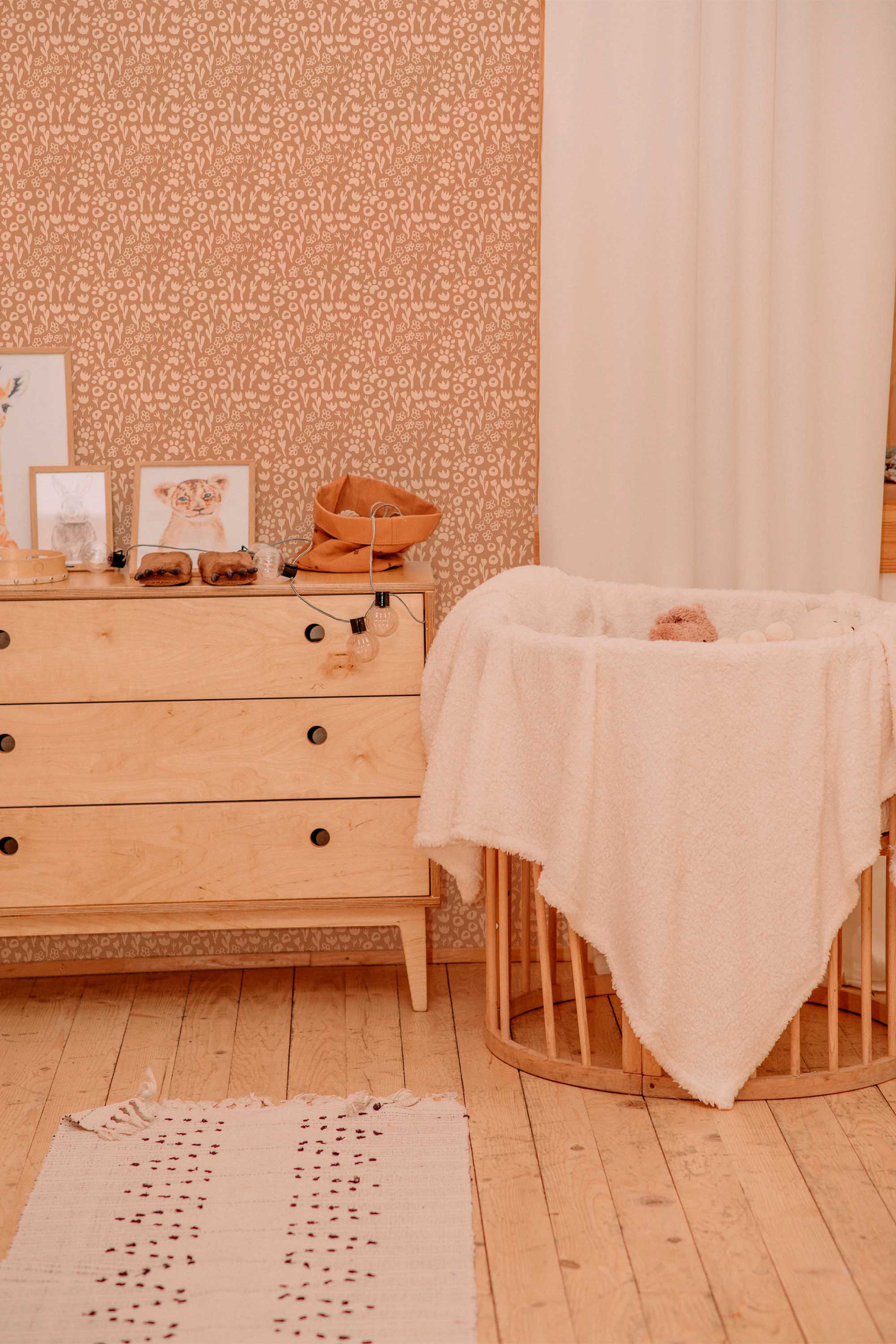 Whimsical Meadow wallpaper brings neutral charm to a bedroom, nursery, or living space with warm brown tones and soft floral details. Tiny botanical elements scatter across the surface, creating a gentle and natural repeating meadow pattern. The Whimsical Meadow peel and stick wallpaper provides a removable and self-adhesive option for effortless updates, and it is also available as non-pasted for a classic paste-the-wall installation. Whimsical Meadow creates a calm and cozy atmosphere while keeping the overall look light and airy. Printed on eco-friendly, PVC-free materials using GreenGuard Certified inks, this wallpaper is safe for indoor use and ideal for renters or long-term decorating.