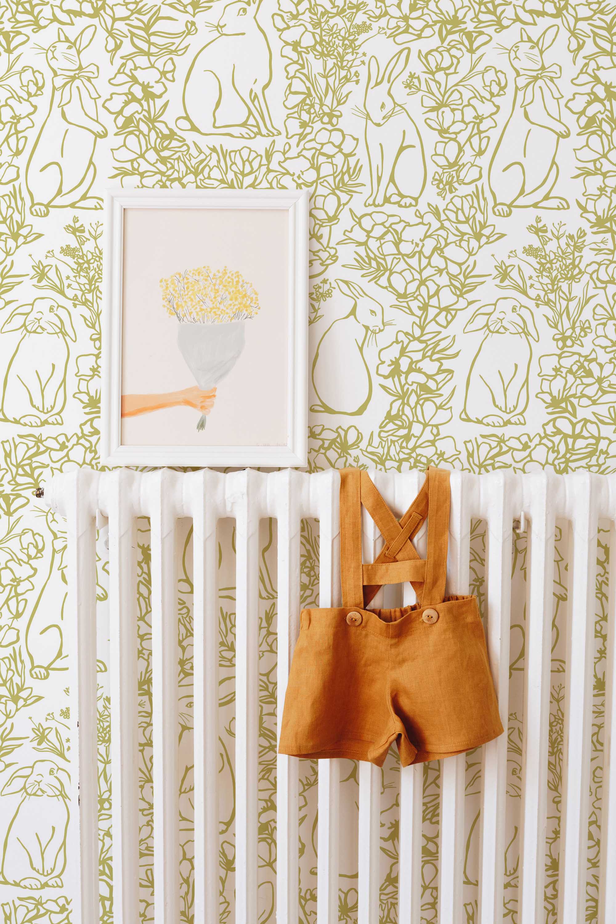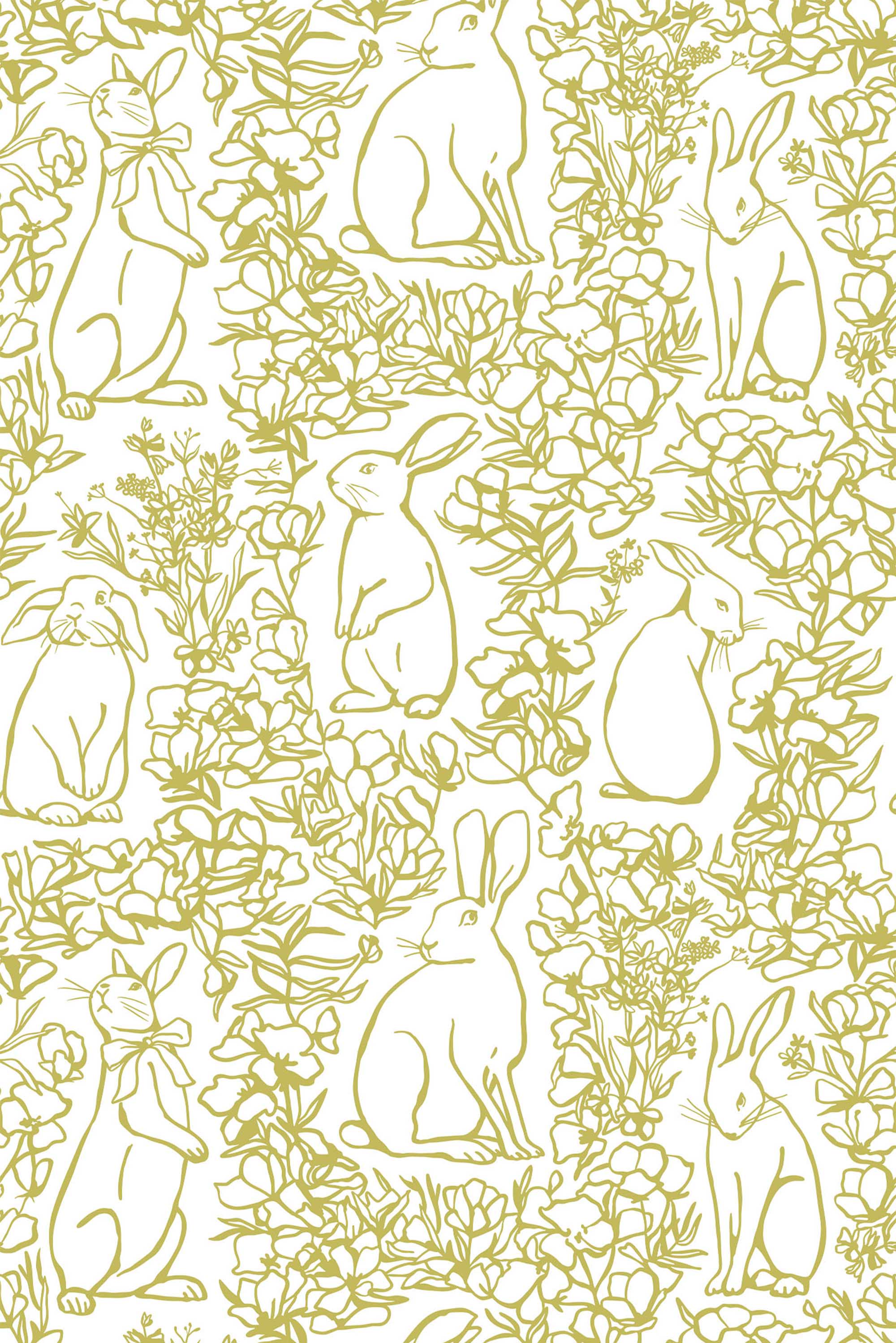 Whimsical Rabbit peel and stick wallpaper makes decorating simple and flexible. The non-pasted option offers a smooth, traditional finish for long-term projects. Both versions use PVC-free materials and GreenGuard Gold certified inks for vivid color and healthy indoor air quality. Woodland Rabbit Pattern wallpaper blends soft botanical detail with playful charm. The original green can be replaced with any of our standard shades or a custom color of your choice.Wallpaper Highlights